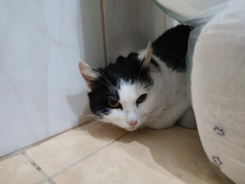 Bidzia trafiła do nas i od wielu tygodni nie wychodziła z kryjówki pod meblami. Za każdym razem, kiedy przychodziliśmy na dyżury, siedziała schowana, zaś posiłek zjadała dopiero po wygłaskaniu jej po bródce.