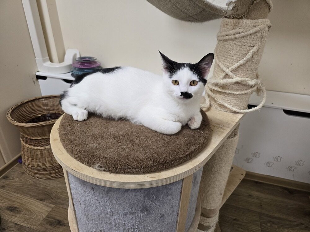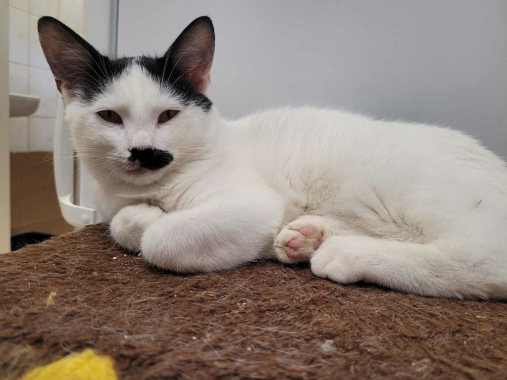 Chaplin, zwany u nas pieszczotliwie Kitlerem, to rezolutny młody kocurek w wieku niespełna roku, który trafił do nas z naszej zaprzyjaźnionej lecznicy. Był kotkiem gminnym, który został przyniesiony do Pani Doktor po wypadku. Stracił wtedy ogonek i został mocno poturbowany 🙁