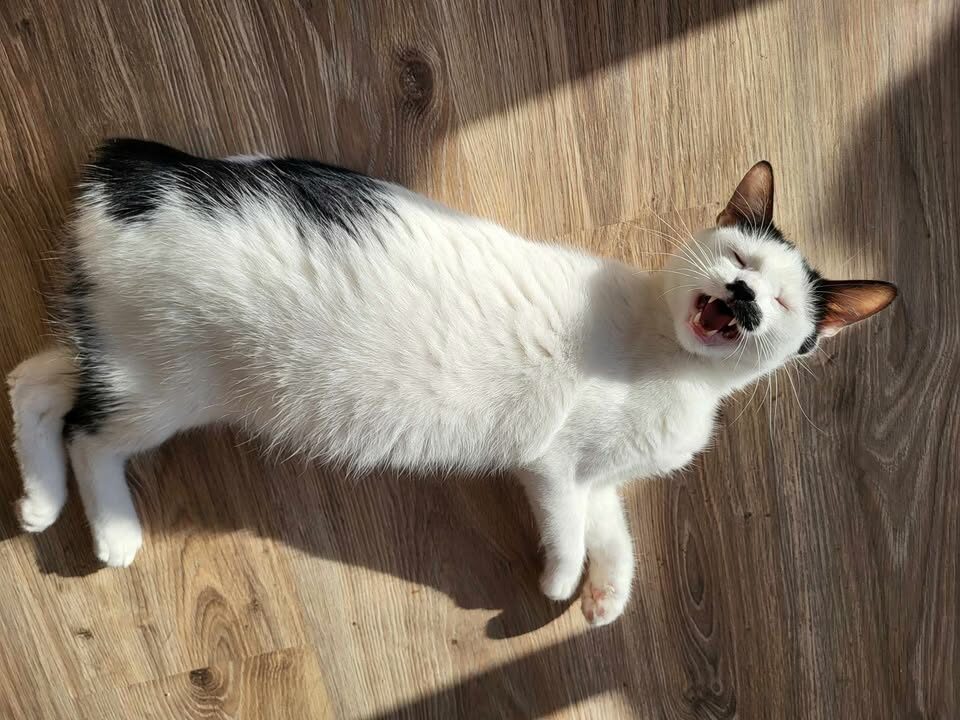 Musiał być operowany i dziś jest kotem bezogoniastym, aczkolwiek nieodczuwającym braku tylnej części ciała 😉