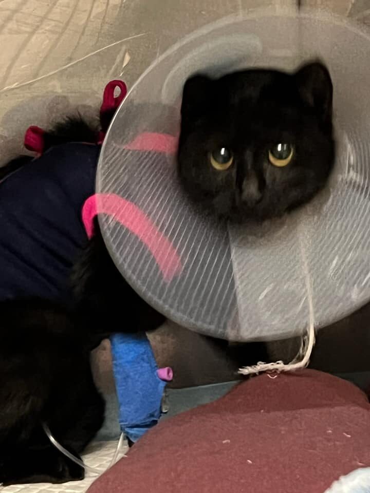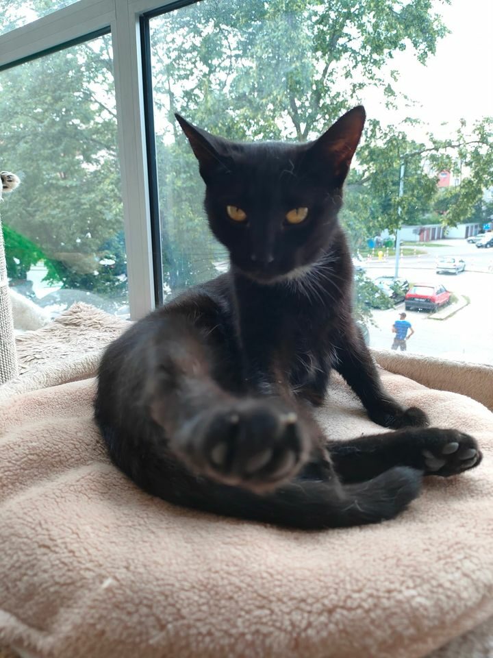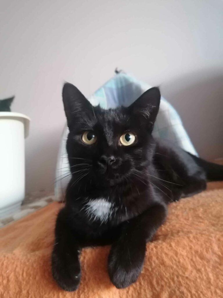 Szukała ciepła w jednej z klatek schodowych na terenie miasta. Śliczna, młodziutka czarnulka o błyszczącej sierści – a do tego wyjątkowo przyjazna i spokojna <3 Coś jednak było nie tak. Dało się zauważyć lekką duszność – która nigdy nie jest dobrym znakiem. W kolejnych dniach dostaliśmy dwie wiadomości: złą… a potem jeszcze gorszą. W pierwszym RTG, wykonanym w Stalowej Woli, widać było przepuklinę przepony. To bardzo poważny uraz, który powoduje, że narządy wewnętrzne uciskają na płuca. Jeszcze tego samego dnia, kotka znalazła się w naszej zaufanej lecznicy w Lublinie, gdzie dalsza diagnostyka pokazała, że jest to przepuklina przeponowo – osierdziowa (organy uciskają też na serce). Istnieje bezpośrednie zagrożenie życia, a kotka nie może tak funkcjonować. Konieczna jest bardzo trudna i ryzykowna operacja, a kilka dni po niej pobyt w całodobowej klinice, gdzie nad kotką będą czuwali lekarze także w nocy. Jak to powiedzieli lekarze: po takiej operacji, nie poradzi sobie sama… Dowiedzieliśmy się, że pęknięcie przepony i osierdzia było wynikiem urazu mechanicznego – najprawdopodobniej mocnego uderzenia lub kopnięcia. Jest więc duże prawdopodobieństwo, że cała nasza walka o jej życie, to walka ze skutkami ludzkiego okrucieństwa.W głowach nam się nie mieści, jak można skrzywdzić tak łagodną i cudowną istotę 🙁 Czarna jest już po operacji. Jednej z trudniejszych i bardziej ryzykownych, jakie przyszło nam wykonać w celu ratowania kociego życia. Zdecydowaliśmy się walczyć o nią, mimo iż nie mamy na to środków. Czasu nie było, gdyż lekarze ocenili jej stan, jako zagrażający życiu… a my nie mogliśmy spojrzeć w te oczka i odmówić jej pomocy… Ryzyko było tym większe, że kotka mogła umrzeć tuż po operacji z powodu niewydolności oddechowej… Przez długi czas jej płuca działały tylko w niewielkiej części, co spowodowało skurczenie się pęcherzyków płucnych. Była operowana przez wiele godzin – przez kilku bardzo dobrych specjalistów. Kotka trafiła do nas z bardzo groźną przepukliną, a szansę na jej zoperowanie z sukcesem były nikłe. Mimo tego, podjęliśmy się tego ryzyka i dziś Czarna jest z nami. Codziennie zachwyca nas swoim niesamowitym urokiem… Przychodzi się przywitać, daje buziaczki, a potem biegnie szybko pomóc kolegom w polowaniu na piłeczkę 💗 Kotka doskonale odnajduje się w stadzie, więc chcielibyśmy znaleźć jej dom, gdzie już będą inne koty. Jest przyjazna i łagodna w stosunku do ludzi i ma to zaoferowania bardzo dużo miłości dla swojego opiekuna.