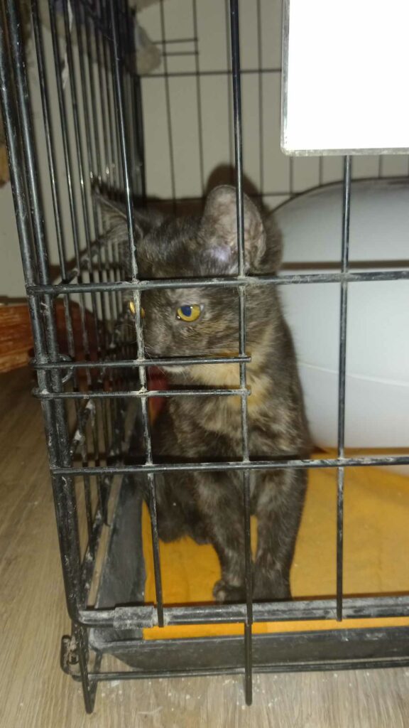 Koteczka ma około 6 miesięcy i jest przesympatyczną, rezolutną i odważną młodą damą.