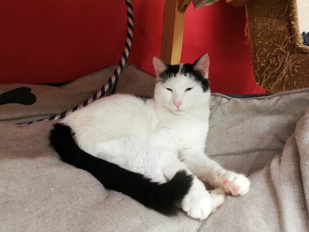 Flip jest rezolutnym i energicznym młodym kocurkiem. Jest ciekawy świata, kochający ludzi i płynącą wodę z kranu (próbuje ją gryźć). Uwielbia się bawić i łasi się do ludzi. Wszędzie go pełno, kocha przytulanie i pięknie pozuje do zdjęć.