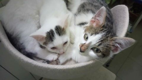Gabryś i Miliś, to maluszki spod Karczmy Biesiada. Jeszcze troszkę uciekają przed nami, ale wzięte na ręce pięknie mruczą i się tulą  Uwielbiają zabawy, ganianie na sznurkiem i myszkami. Maluchom szukamy wspólnego domu, gdzie będą mogły razem zdrowo się rozwijać.