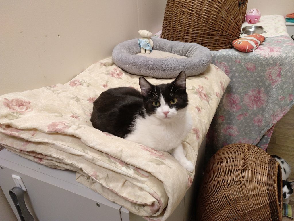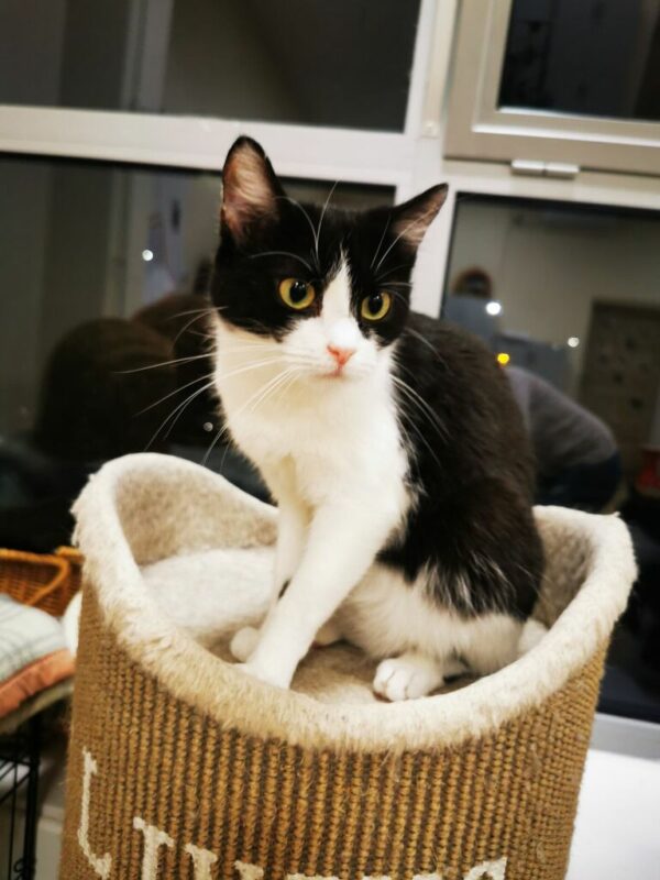 Gwiazdeczka to spokojna kotka, która nie do końca odnajduje się w naszej fundacji. Boi się tłumu kotów i zamieszania podczas każdego dyżuru. Ludzi bardzo kocha, lecz nie jest na tyle odważna, aby zabiegać o ich uwagę. Za to kiedy siedzimy przy niej i ją głaskamy, pięknie mruczy.