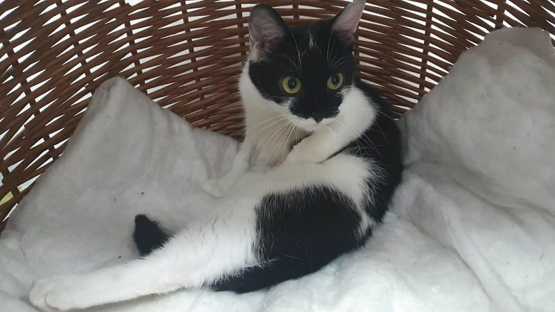 Została wysterylizowana, a także odrobaczona i dwukrotnie zaszczepiona. Zdecydowanie woli ludzi niż inne koty. Jest spokojna i ułożona.