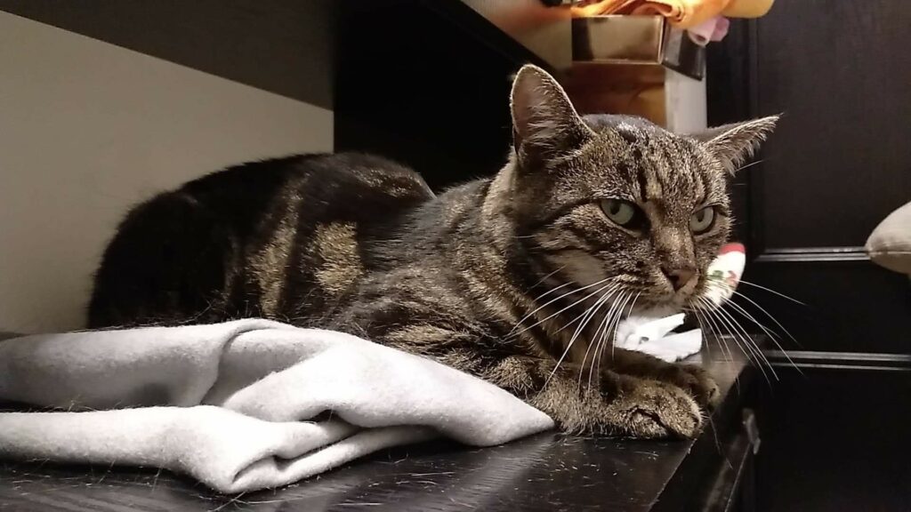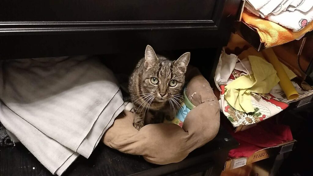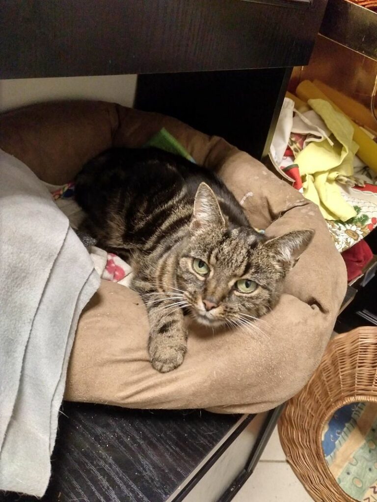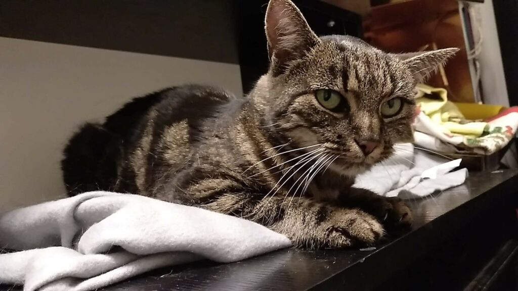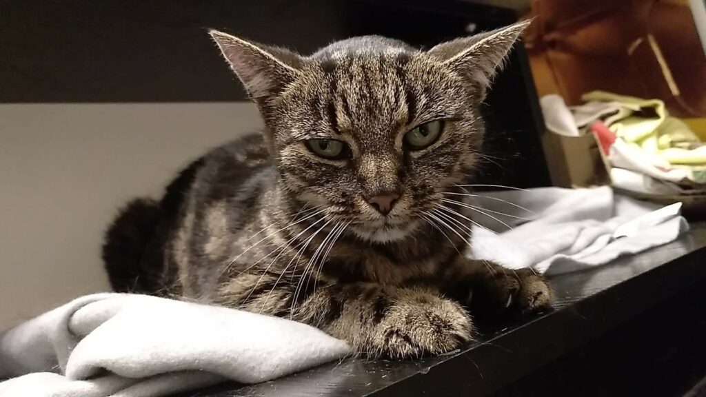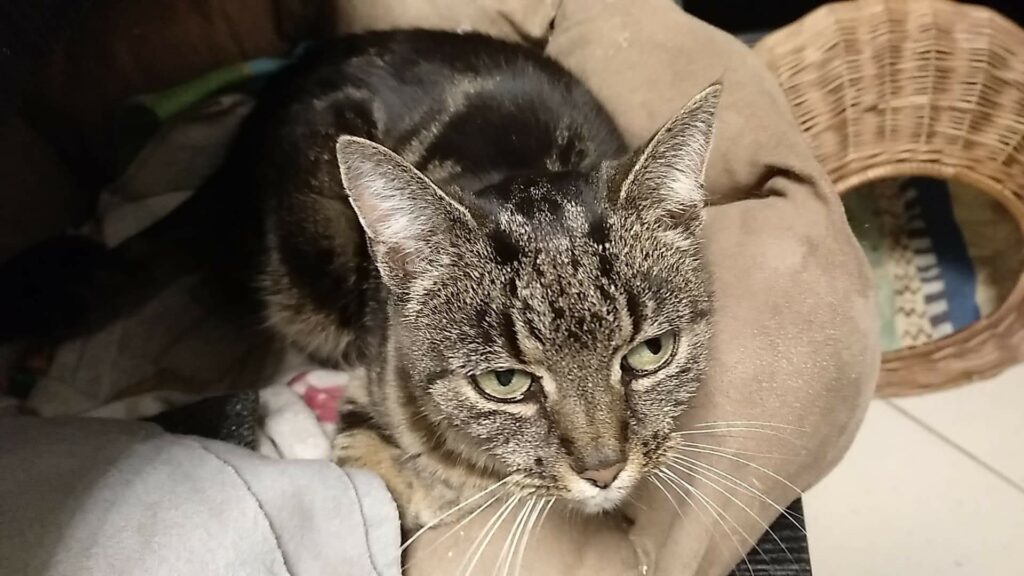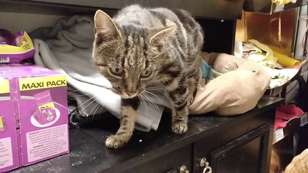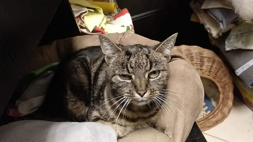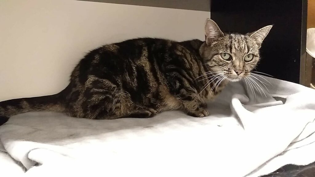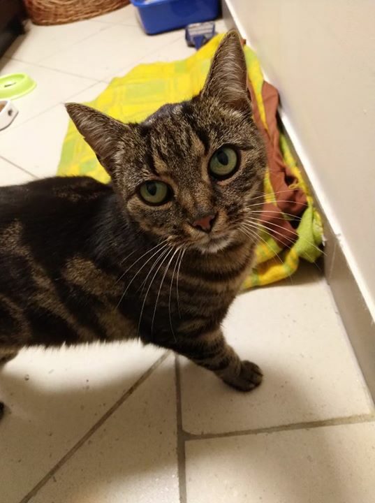 Ta śliczna marmurkowa koteczka, została znaleziona na działkach. Miała na sobie kolorową obróżkę z dzwoneczkiem, więc na pewno była kiedyś czyjaś. Niestety,mimo ogłoszeń, nikt się po nią nie zgłosił. Kodzia- bo tak ją roboczo nazwaliśmy, czeka na dom w izolatce, gdzie nie ma dostępu do światła dziennego. Kotka nie toleruje towarzystwa innych kotów… nawet na widok kociąt reaguje paniką.