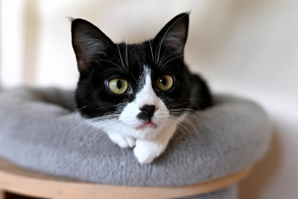 Po kilkumiesięcznym pobycie w domu tymczasowym, trafiła do nas. Początkowo bardzo się bała, lecz codziennie siadaliśmy z nią, głaszcząc i tłumacząc, że jesteśmy tam dla niej <3 Dzięki wytrwałej pracy nad nią, stała się prawdziwą kocią gwiazdą. Odważną i rezolutną. Lubi sobie do nas pogadać i towarzyszy nam we wszystkich fundacyjnych obowiązkach. Do adopcji do domu niewychodzącego. Konieczne kocie towarzystwo.