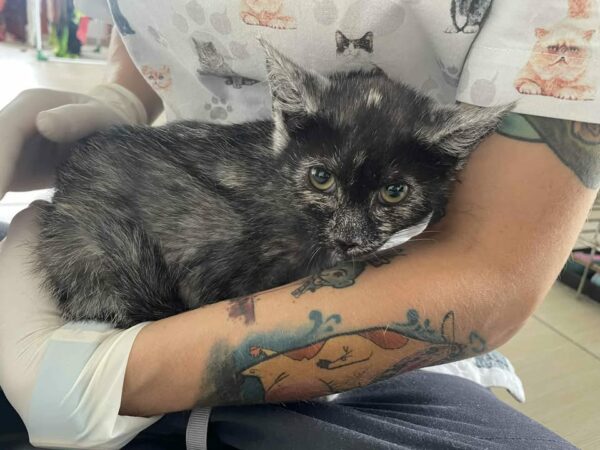 Malutka – około 3-3,5 miesięczna koteczka od kilku dni nie je. Sytuacja jest o tyle dramatyczna, że maleńka jest dzikuskiem, jedynie odrobinę przyzwyczajonym do człowieka, a na terenie tej działki niedawno wystąpiła panleukopenia.
