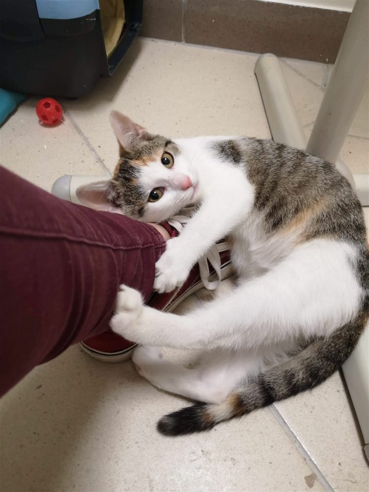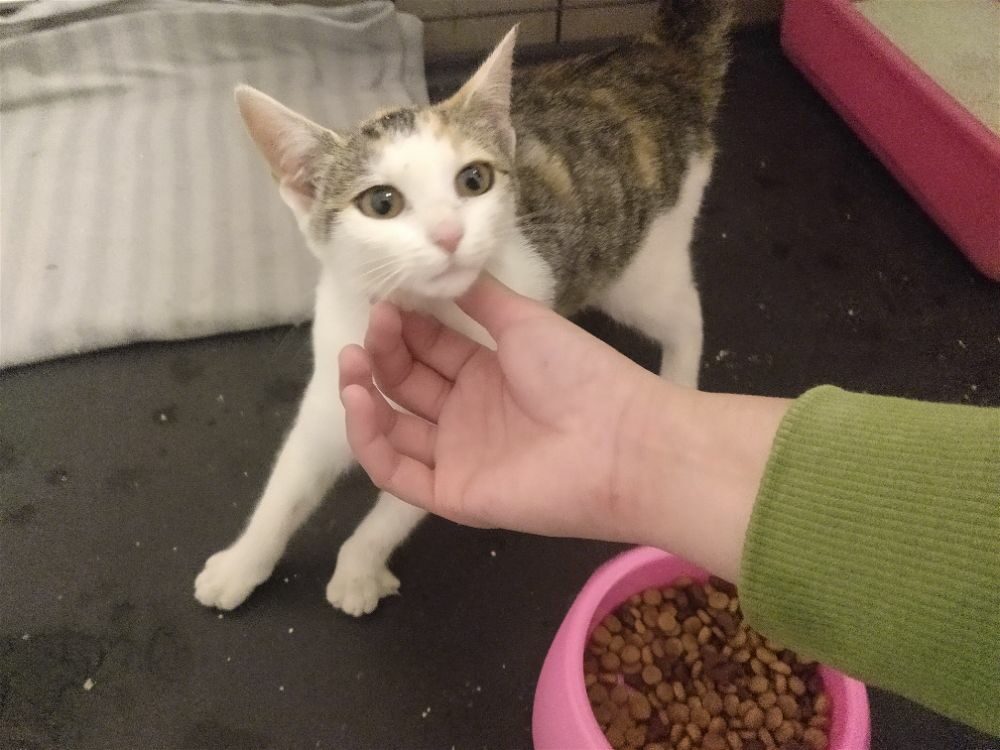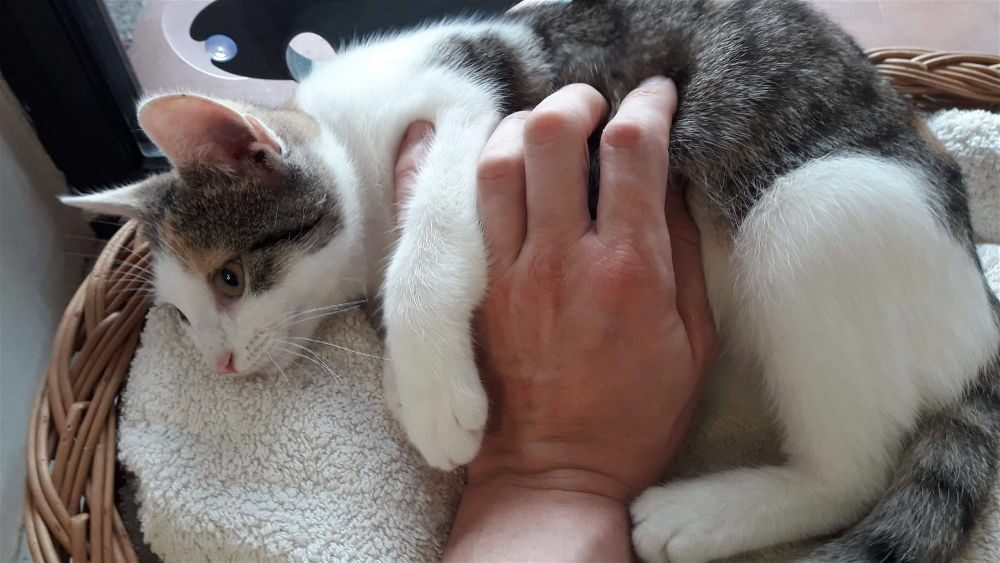 Zgłoszono nam kotka, którego znalazca bał się dotknąć, wręcz był szczuty psem by sobie poszedł. Kociak okazał się niesamowitym miziakiem.