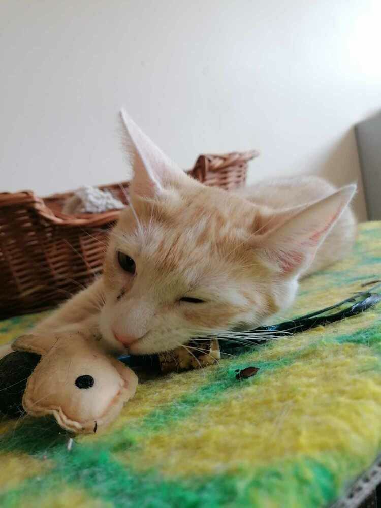 Czwarty braciszek, wśród pięknego biszkoptowego rodzeństwa uratowanego z działek. Koty giną tam w paszczach lisów, stąd ulegamy prośbom karmiciela, aby brać do nas te które udaje się oswoić. Macchiato jest jeszcze bardzo nieśmiały, ale zdarza się mu już mruczeć i nadstawiać do głaskania. Będą z niego koty 🙂