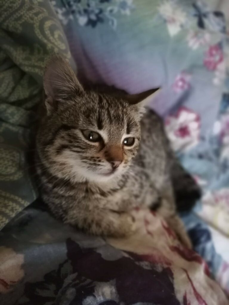 Ta malutka koteczka została przyniesiona do naszej Fundacji po tym, jak znaleziona został na środku jezdni (prawdopodobnie potrącony przez samochód). Była zakrwawiona, mocno wychłodzona i nie potrafiła się poruszać.
