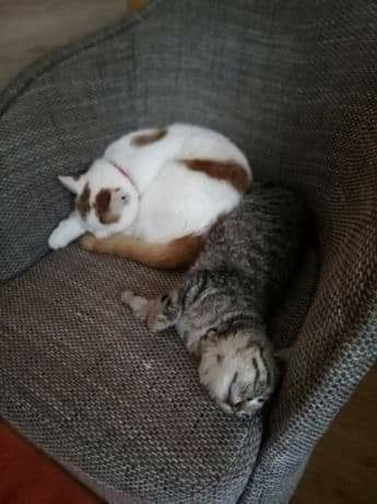 Dziś, Nala ma już około 5 miesięcy i jest cudowną, szaloną i rozbrykaną koteczką, której niepełnosprawność w niczym nie przeszkadza, aby rozrabiać. Nala uwielbia ludzi, jest wręcz nachalna…pasjonuje ją monitor komputera, a w wolnych chwilach kradnie jedzenie (w tym wegański boczek). Jest też świetną towarzyszką zabaw. W domu tymczasowym uprawia zapasy z rówieśnikiem Totusiem.