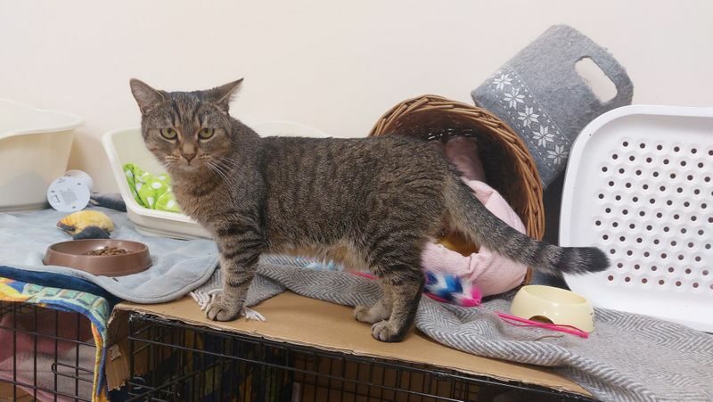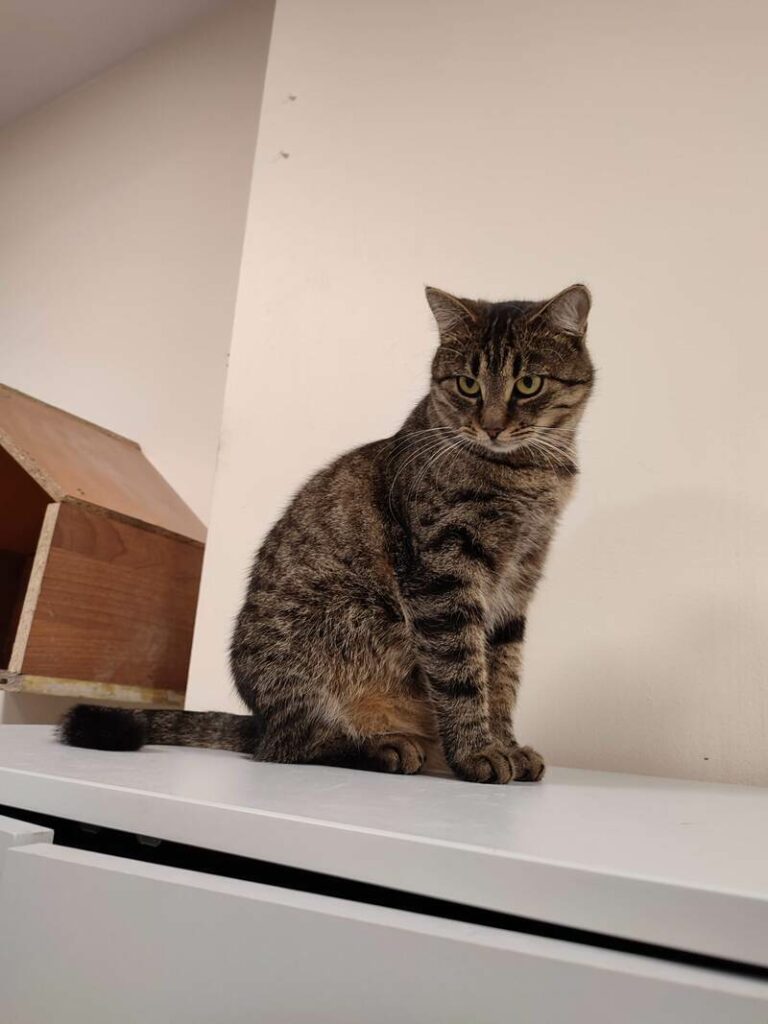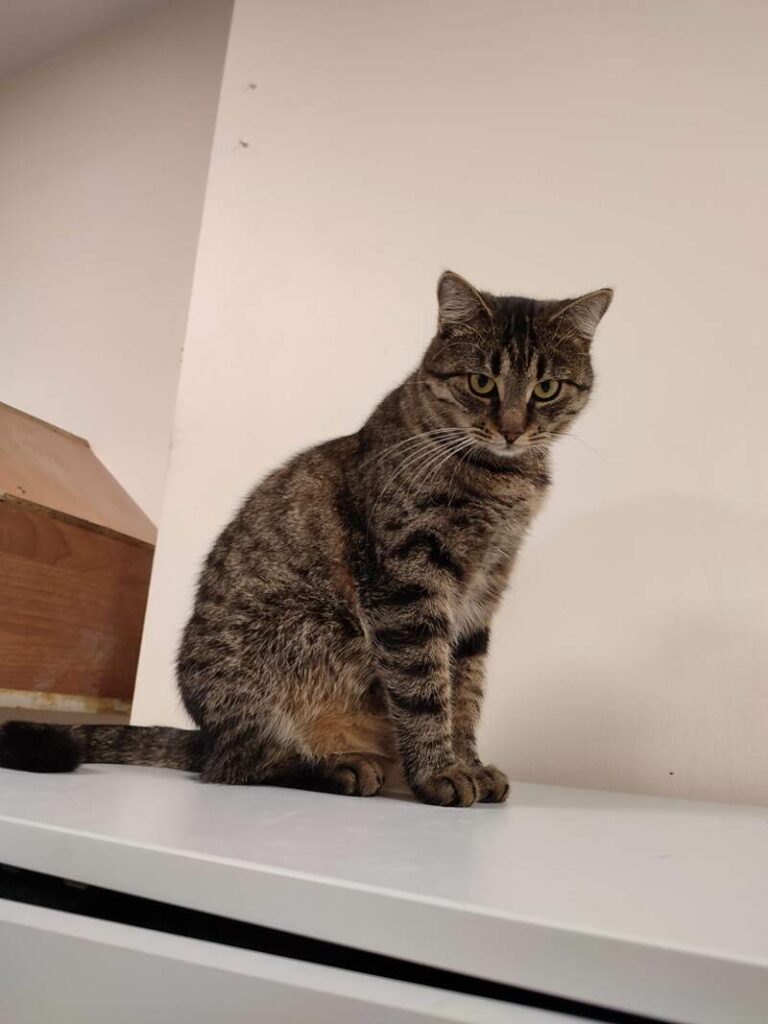 Kotka przybłąkała się na jedną z posesji pod Stalową Wolą. Spała w wiacie i była przeganiana przez lokalne koty, broniące swojego terenu. Nie było też łatwo jej złapać, choć od razu wiedzieliśmy, że jest to kotek wychowany w domu, który bardzo długo musiał sobie radzić sam. Olimpia trafiła do fundacji, gdzie została zaszczepiona i wysterylizowana. Jest kochaną, acz nieśmiałą koteczką, która świetnie odnajdzie się w domu spokojnym, z przyjaznymi kotami lub psiakami.