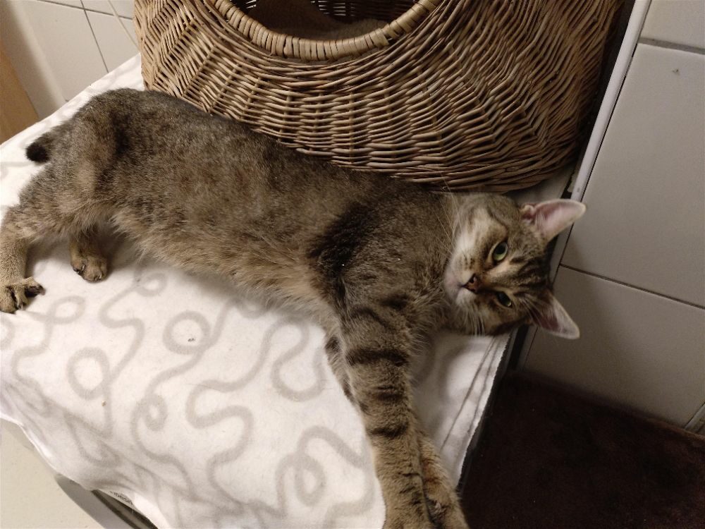 Prawie 50 kotów, zamkniętych na powierzchni 30 metrów kwadratowych, w brudzie i we własnych odchodach. Wśród nich karmiące kocice z maluszkami, koty głodne, chore i zarobaczone. Po śmierci opiekunki, groziła im wszystkim zagłada, lecz dzięki dobrym ludziom mają cień szansy. Koty od trzech tygodni zamknięte były w transporterach, osoba która je tam zastała musiała od czegoś zacząć. Część została zabrana w pierwszej turze interwencji przez Fundację Felineus… pozostała część trafiła między innymi do nas. Wyciągane były z transporterów, gdzie spędziły długie tygodnie. Część z nich ma odparzenia, część biegunki, część przykurcze, które utrudniają im poruszanie się. Koty mają pchły, świerzbowca, tasiemca… są skrajnie wychudzone i ledwie żywe ze strachu. Z każdym dniem zaczynają ufać człowiekowi, dają się głaskać, cieszą z zabawek i jedzonka.