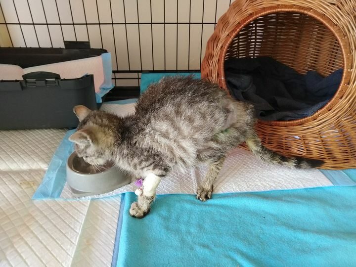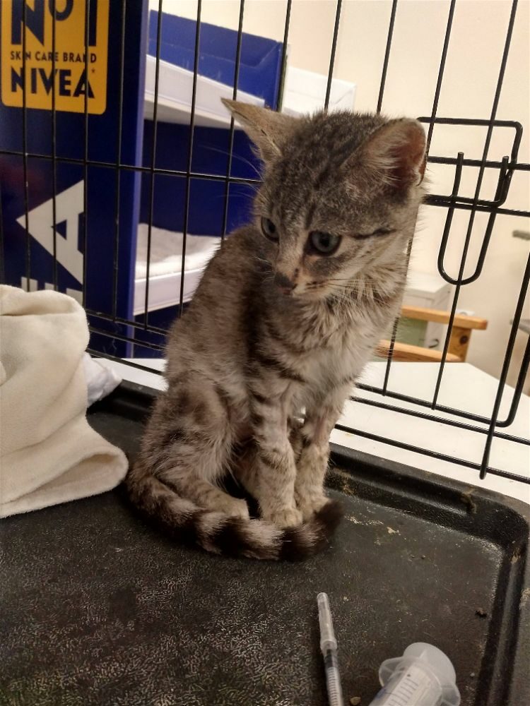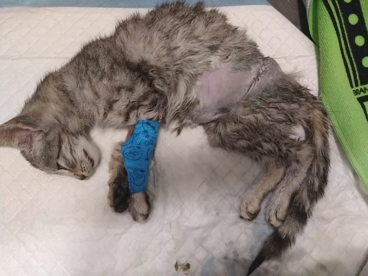 Trafił do nas malutki kociak, który złapał się we wnyki 🙁 To już drugi przypadek w tym roku, a pierwszy – Amigo, nadal ma poważne problemy zdrowotne. Ten maluszek został wyswobodzony z druta który wbił się w jego brzuszek w ten sposób, że spowodował paskudną, śmierdzącą ranę. Maluch jest przeraźliwie chudy i ma problem z wypróżnianiem. Nie wiemy w jakim stanie są jego narządy wewnętrzne. Kociak nie mógł się wypróżnić i bardzo cierpiał. Pani doktor próbowała pomóc, ale obrażenia są na tyle niefortunne, że doprowadzenie go do stanu umożliwiającego funkcjonowanie może być trudne i wymagające dobrego chirurga. Już konsultujemy wstępnie kociaka z najlepszymi specjalistami… dowiedzieliśmy, że musimy wykonać szereg badań i dopiero one pokażą ci można zrobić. Kicia jest już po pierwszej operacji – zabiegu oczyszczania rany. Jej jelita musiały być oczyszczone „ręcznie”… Nie wiemy czy wróci perystaltyka i czy wrócą one do normalnych rozmiarów. Teraz czeka ją trzydniowa głodówka, a potem okaże się na ile układ pokarmowy się regeneruje. Jeśli wszystko pójdzie dobrze, trzeba będzie operować brzuszek, żeby mógł normalnie pracować. Pani doktor w końcu pozwoliła coś pochlipać 🥰🐱 Maleństwo czuje się lepiej, choć decydujące będą kolejne dni. Na tą chwilę nie wiemy czy jelita zaczną pracować. Jeśli tak, ruszamy w Polskę szukać chirurga, który go zoperuje. Malutka Penny ma się nieźle, choć ewidentnie coś ją boli. Je, załatwia się, a to daje nadzieję, że jelita się zregenerują. Wokół brzuszka ma ogromną ranę i w najbliższych dniach musi znów trafić do weterynarza, żeby ocenić co dalej…rana nie chce się goić. Penny, o którą walczyliśmy bardzo długo, wyrosła na szczęśliwą i zadziorną kotkę, którą wszyscy obserwujemy z zachwytem <3 Dla przypomnienia: Penny została znaleziona we wnykach…jej brzuszek obwiązany był metalową żyłką i spowodował przecięcie wszystkich tkanek oraz ogromne zakażenie. Kotka przeszła szereg zabiegów i operacji (w tym zabieg sterylizacji). W międzyczasie Penny zachorowała na FIP. Po raz kolejny udało się ją zawrócić zza tęczowego mostu, dzięki czemu może być teraz z nami, plażować w ulubionym żwirku, pacać nas delikatnie łapą, jakby chciała się boksować i ganiać jak szalona z piłeczkami w pysku 🙂