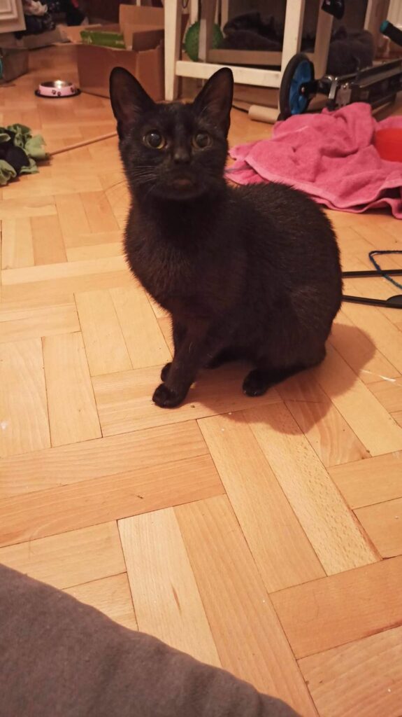 Koci dramat skończył się dla trzech kotów z piwnicy. Dwa dorosłe trafiły do nas, zaś jedno maleństwo do domu stałego. Cała reszta: 8 maluszków i nie wiadomo jak wiele dorosłych, nadal czeka w piwnicy – głodna i bez dostępu świeżego powietrza i światła dziennego. Do adopcji wyjątkowa kotka Pori  🙂 Przez pierwsze miesiące swojego życia nie miała w ogóle kontaktu z człowiekiem. Na początku ze strachu zastygała w naszym towarzystwie – dosłownie nie mogła się ruszyć. Teraz jest lepiej – je przy nas, zaczyna polować na wędkę, podchodzi obwąchać.. w dalszym ciągu jest ostrożna i czujna, ale z tygodnia na tydzień widać poprawę 🙂 kotka szuka specjalnego domu, ze specjalnymi i cierpliwymi ludźmi. Pori nie jest nakolankowym kotkiem, potrzebuje czasu aby się oswoić i w pełni docenić towarzystwo człowieka. Lubi natomiast spędzać czas obok. Lubi też szukać smaczków pochowanych w mieszkaniu, często zapomina wtedy o strachu. Obecnie je wysokomięsne puszki i mięsko 🙂