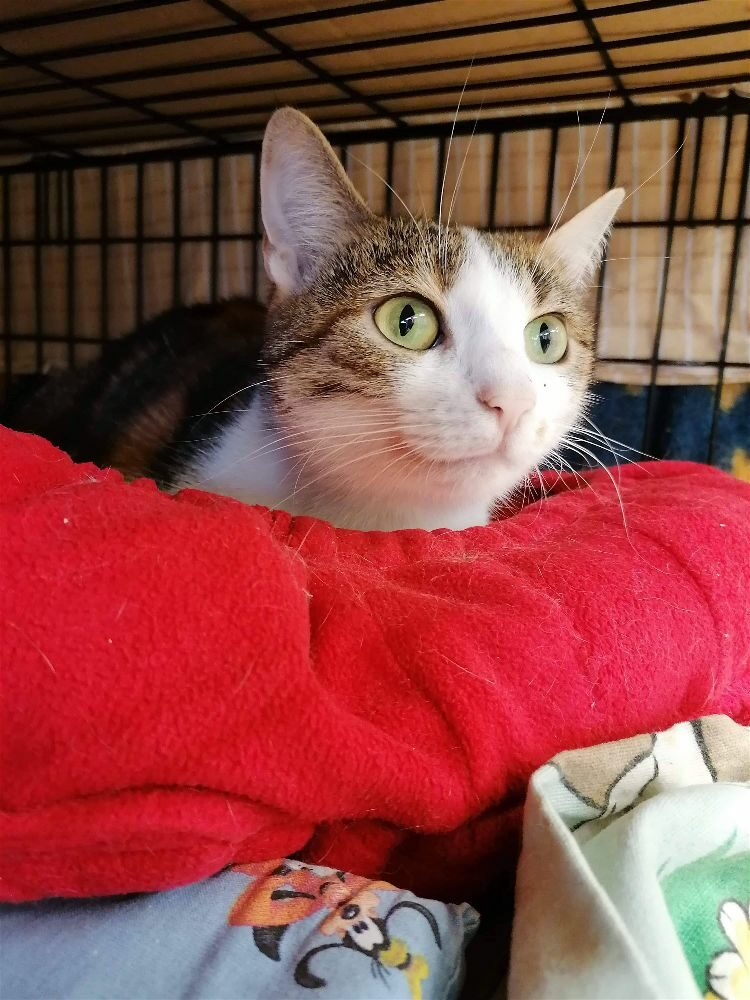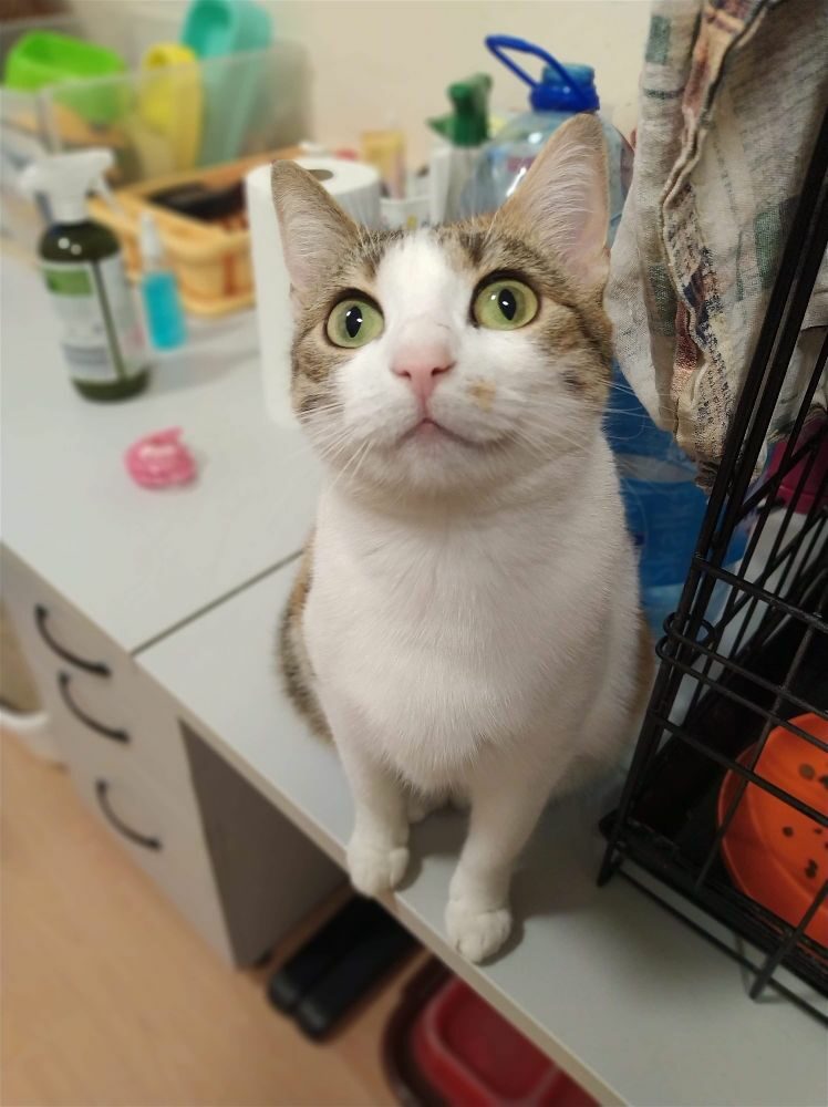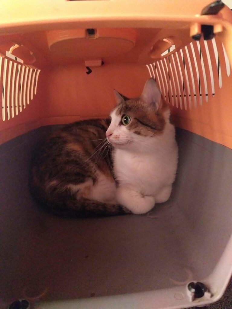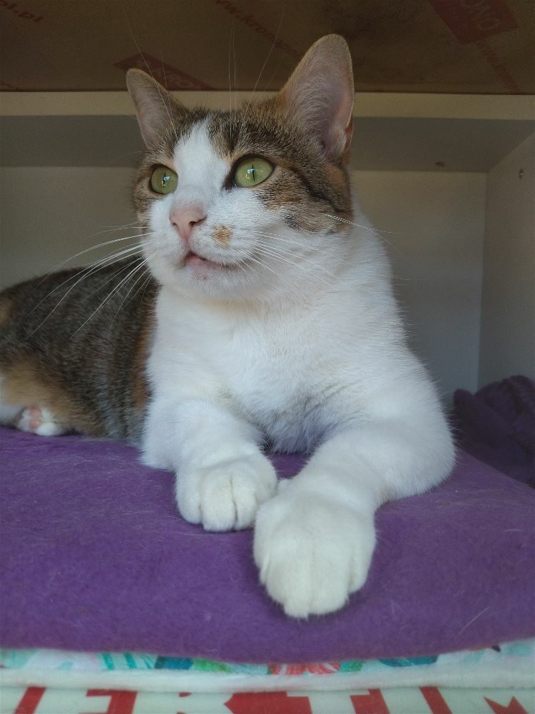 Kotka trafiła do nas w nieoczekiwany sposób. Właścicielka kotka porzuciła ją, bezkarnie zostawiając go pod drzwiami fundacji w transporterze. To złamało kici serce. Kotka była przerażona całą tą sytuacją. Przez długi czas nie mogła się odnaleźć w fundacyjnych warunkach, wśród gromady kotów. Była zalękniona i nieufna. Po długim czasie w fundacji bardzo się zmieniła.