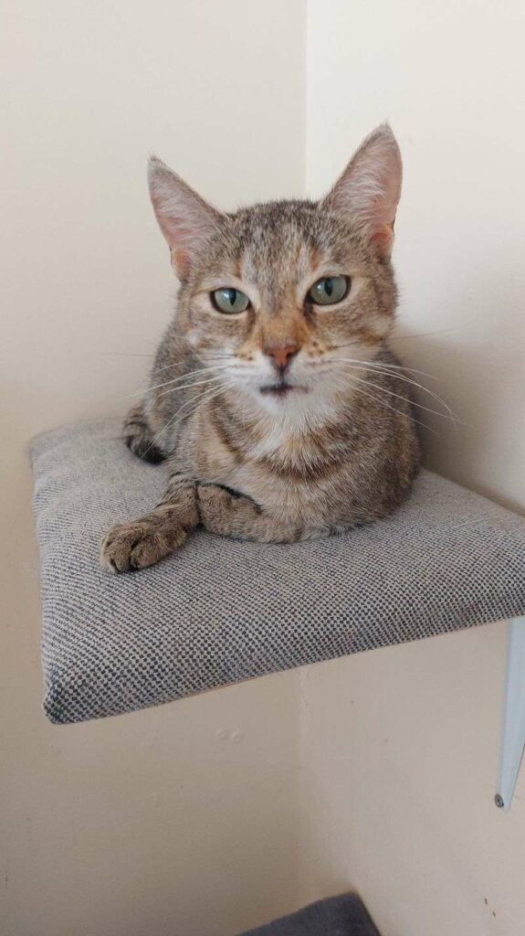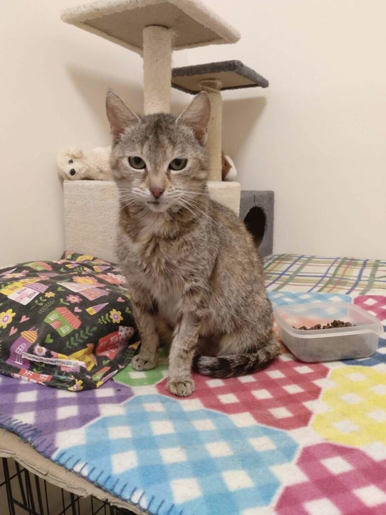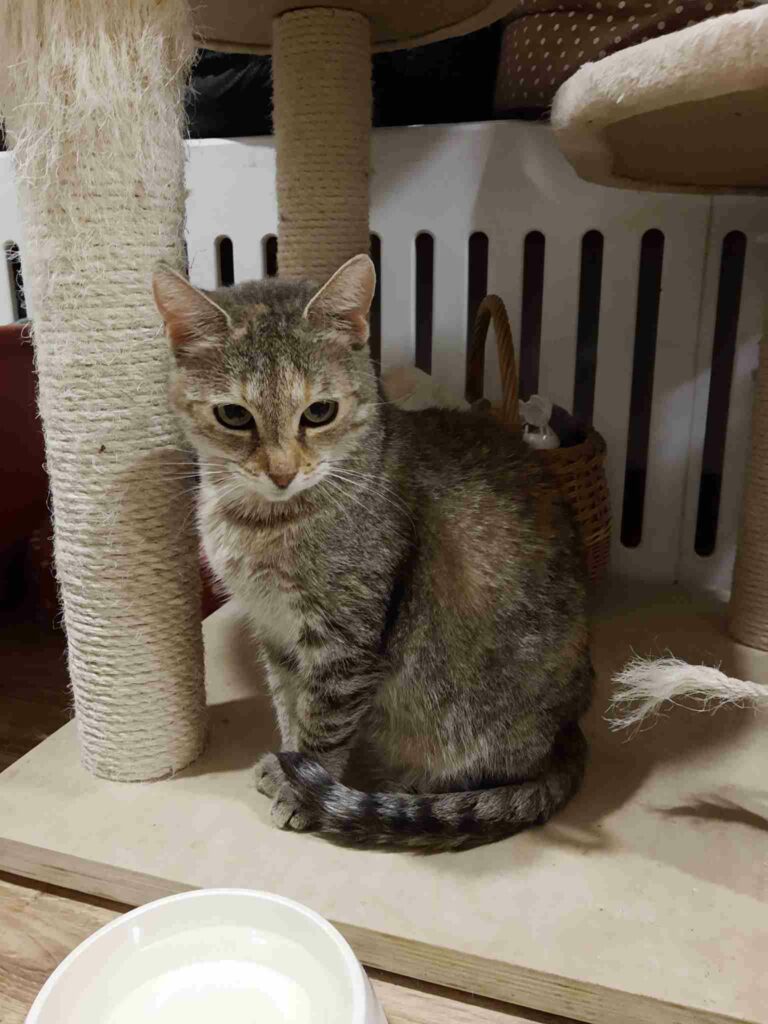 Została zabrana podczas interwencji od alkoholików, z kotami bywa różnie, jak jej bardzo nie wchodzą w drogę to jest ok. Do ludzi bardzo pozytywnie nastawiona, lubi mizianko