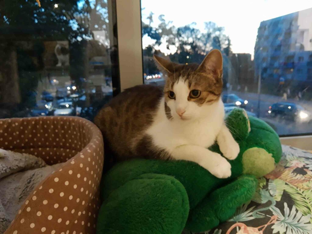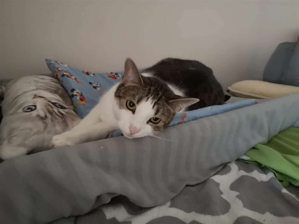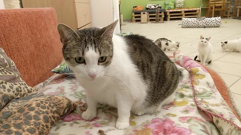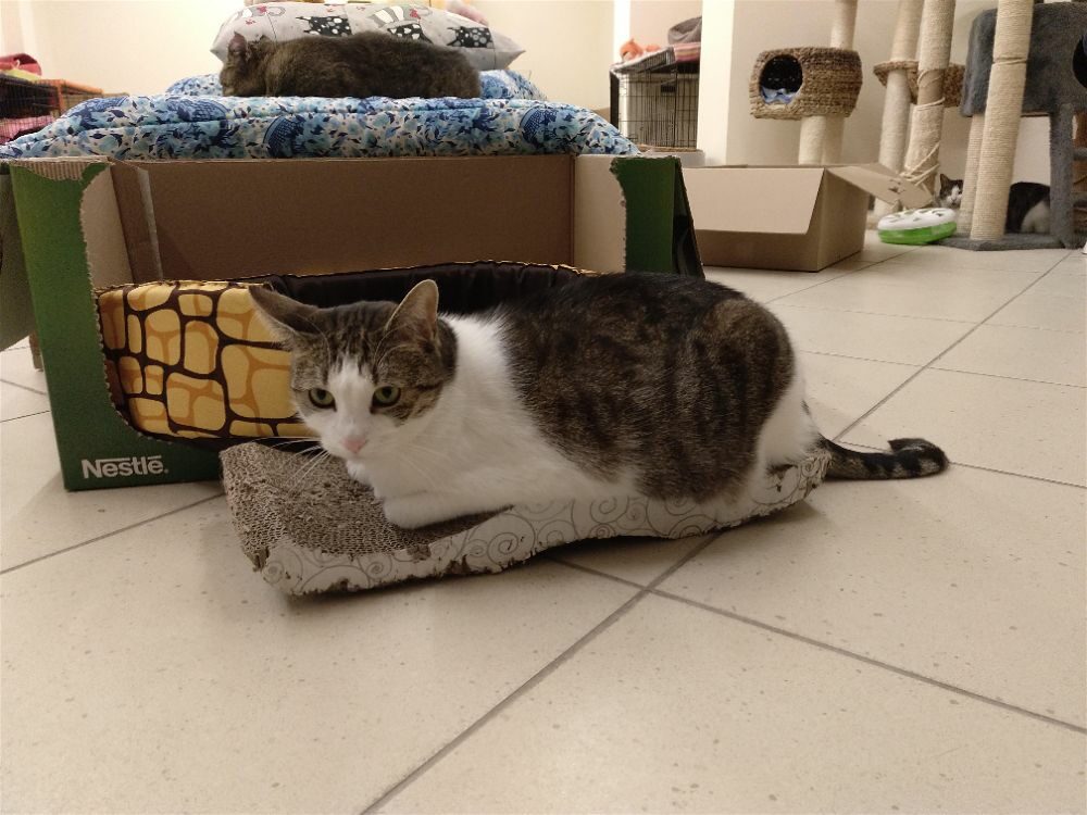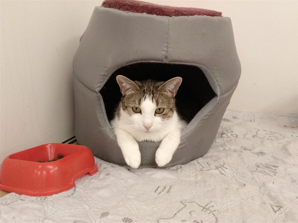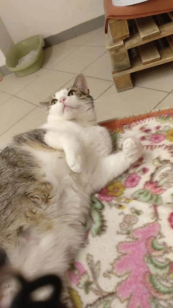 Roma była kotką, która.. nie mruczy. Wychowała się w domu z innymi kotami, mimo to woli samotne życie. Nie lubi być w centrum uwagi, wręcz chowa się po kątach. Jest bardzo płochliwa. Głaskana nie wydawała żadnych dźwięków, choć miewała odruchy ugniatania. Po długiej resocjalizacji Romcia zaczęła mruczeć – zajęło jej to 4 lata. Choć wciąż boi się podchodzić do ludzi to głaskana wykłada się, bodzie główką i mruczy szczęśliwa. Większość czasu spędza w legowisku, ale potrafi również ganiać za laserem lub muchą. Szukamy dla niej spokojnego domu, cierpliwego, bez dzieci i innych kotów, gdzie opiekun zaakceptuje jej potrzeby.