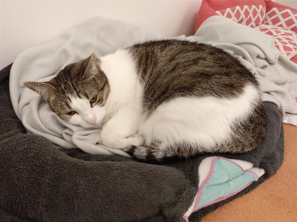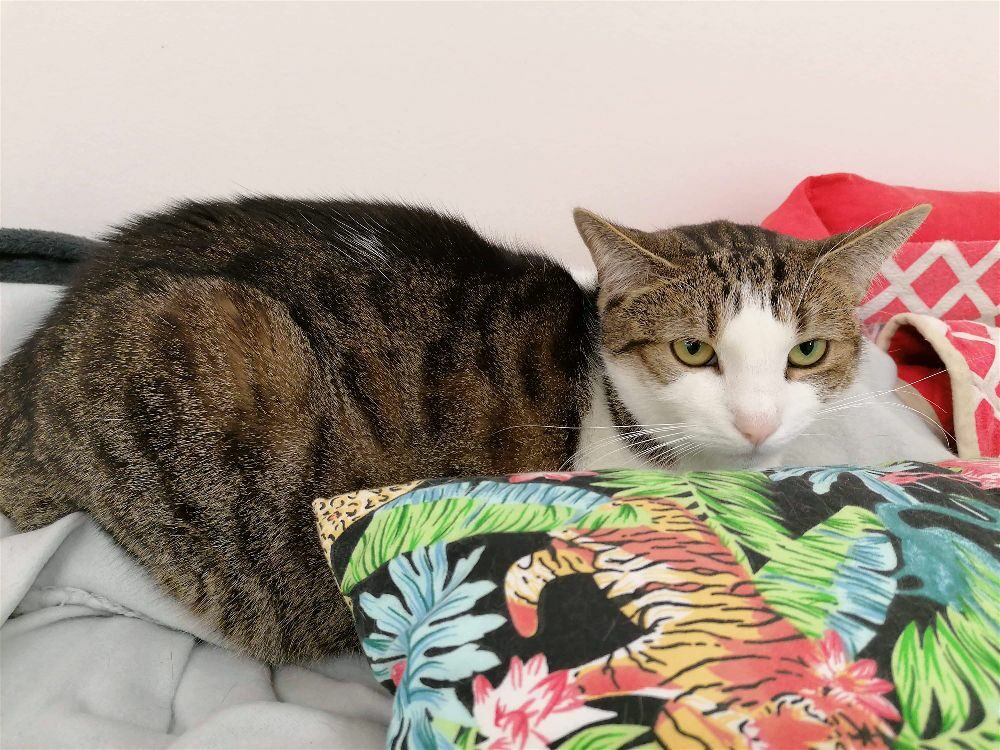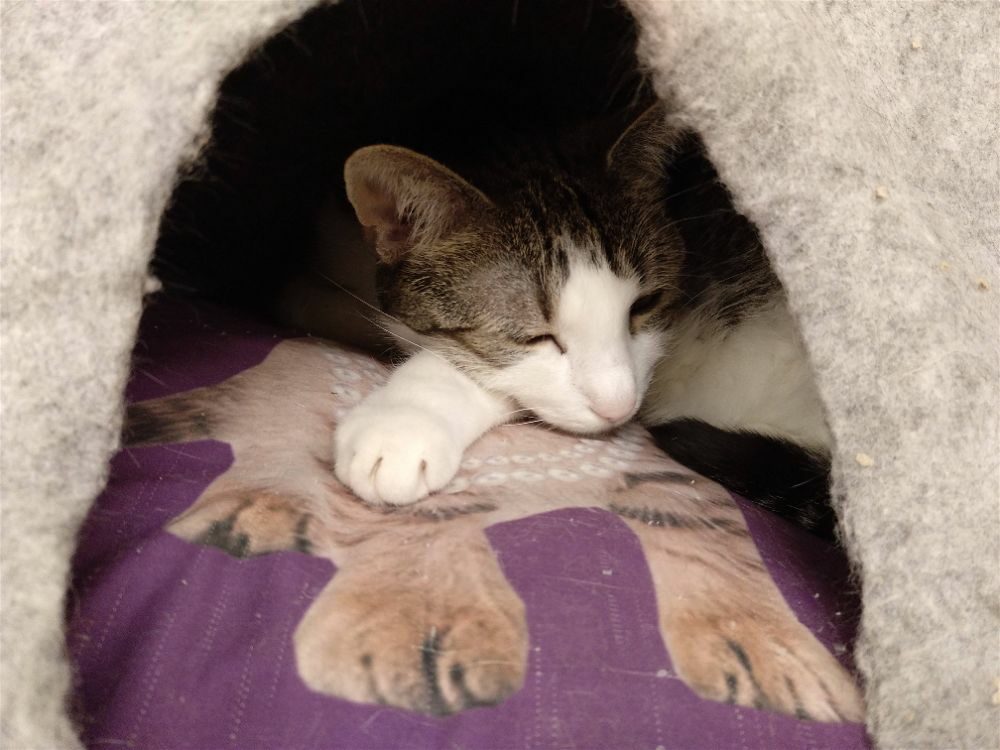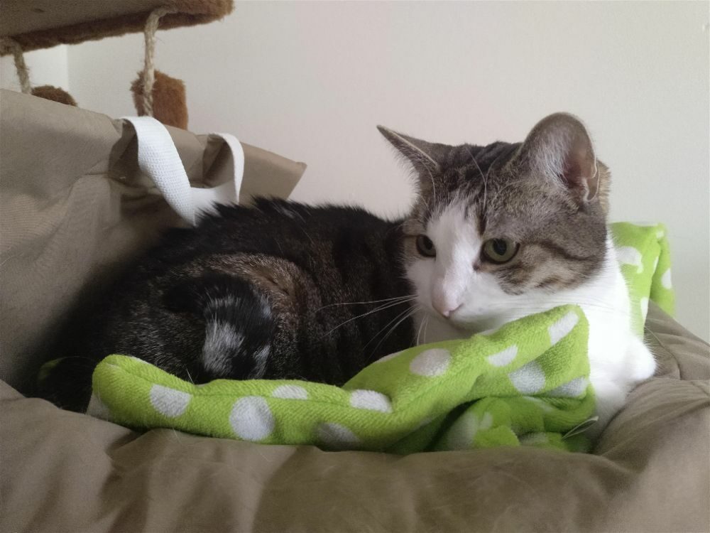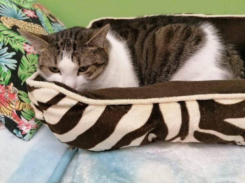 Roma była kotką, która.. nie mruczy. Wychowała się w domu z innymi kotami, mimo to woli samotne życie. Nie lubi być w centrum uwagi, wręcz chowa się po kątach. Jest bardzo płochliwa. Głaskana nie wydawała żadnych dźwięków, choć miewała odruchy ugniatania. Po długiej resocjalizacji Romcia zaczęła mruczeć – zajęło jej to 4 lata. Choć wciąż boi się podchodzić do ludzi to głaskana wykłada się, bodzie główką i mruczy szczęśliwa. Większość czasu spędza w legowisku, ale potrafi również ganiać za laserem lub muchą. Szukamy dla niej spokojnego domu, cierpliwego, bez dzieci i innych kotów, gdzie opiekun zaakceptuje jej potrzeby.