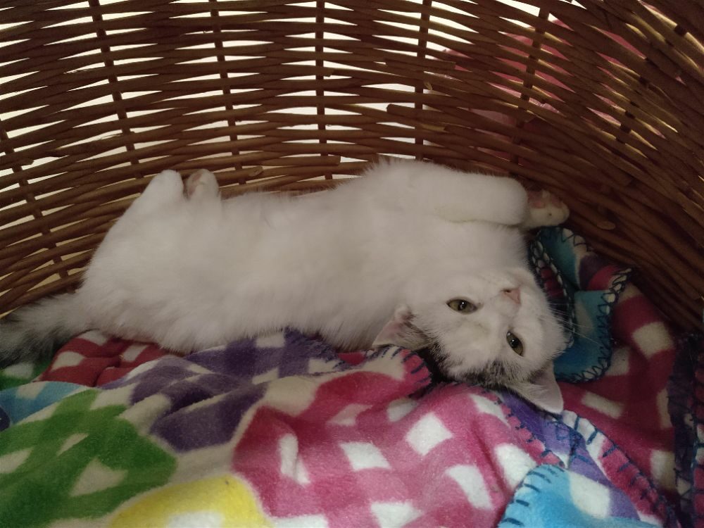 To kociątko pojawiło się u nas po kilkudniowym pobycie w szpitaliku. Udało się umieścić je w domu tymczasowym, razem z innym kociakiem z interwencji. Maleństwo urodziło się na terenie jednego z przedszkoli, jako dziecko dzikiej kocicy.