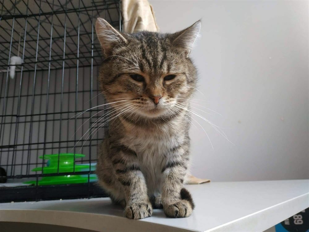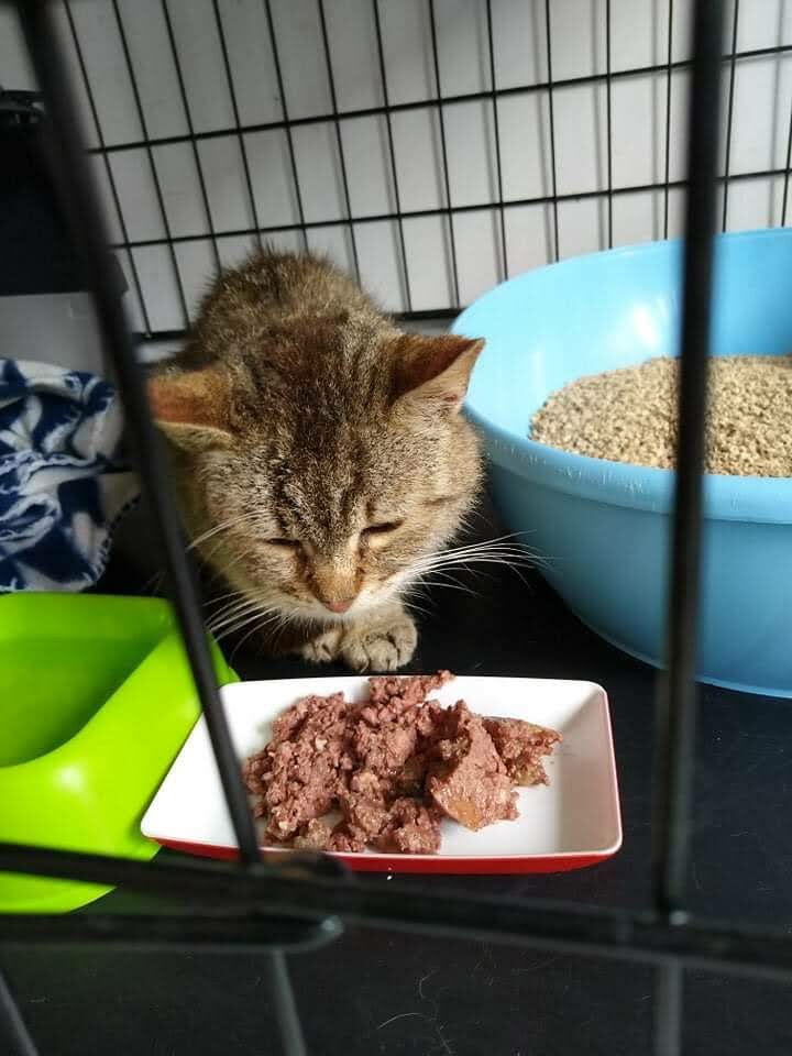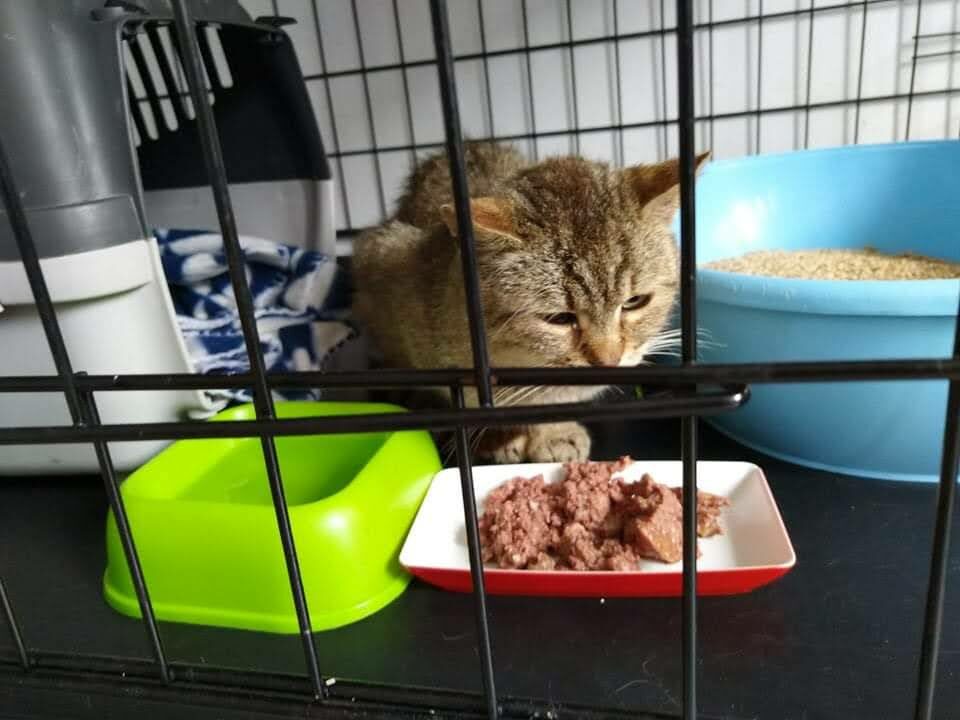 Kotek był bardzo głodny, więc szybko udało się go złapać na klatkę – łapkę, skąd trafił do fundacyjnej rezydencji w postaci klatki bytowej Początkowo myśleliśmy, że to kotka – więc dostał na imię Rusałka. Szybko jednak, jego zapach (niekastrowany kocur), przekonał nas do zmiany imienia na Rusałek