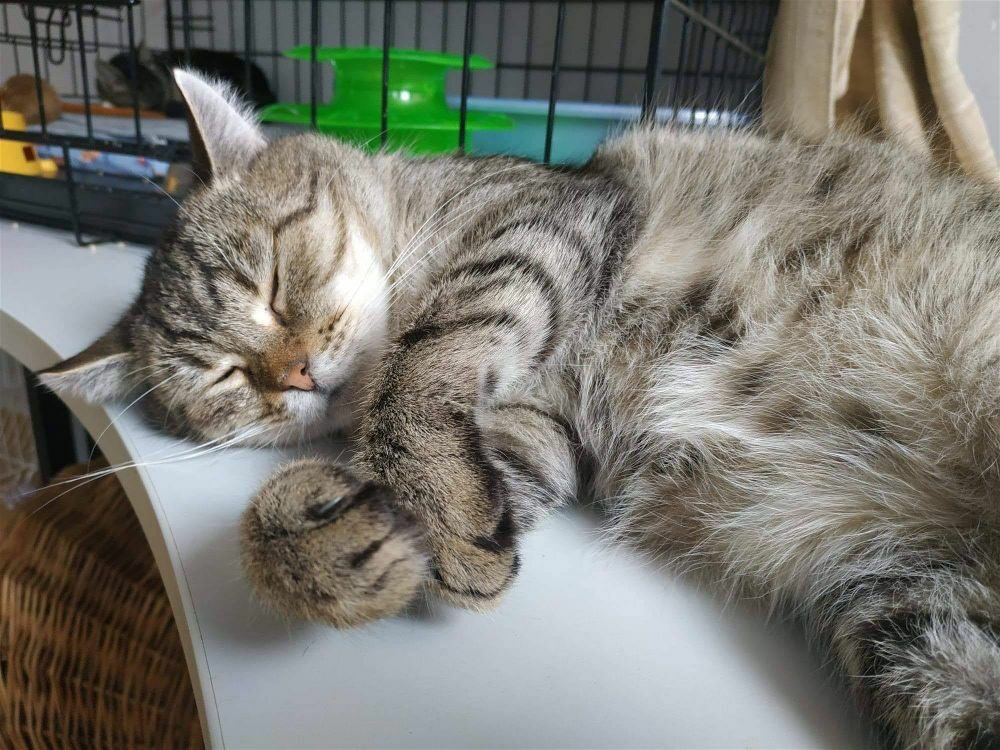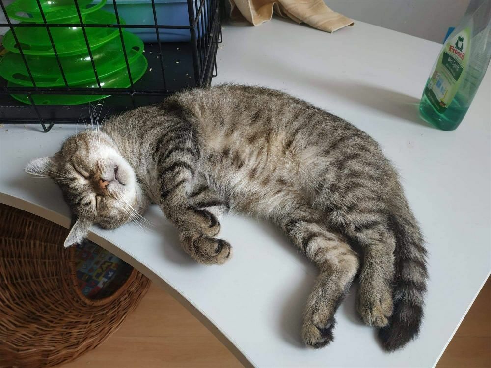 Po jakimś czasie, zauważyliśmy, że oczka zaciska z coraz mniejszym przekonaniem, a zdarzało się że spał przy nas z brzuszkiem do góry <3 Teraz – kiedy jest już po dwóch szczepieniach, odrobaczeniu i kastracji, chodzi sobie wolno z innymi kotami i często przyłapujemy go na zabawie myszką czy korzystaniu z drapaka. Rusałek jest kotem wyjątkowym… oazą spokoju i łagodności. Nieco lękliwy, ale tylko przez jakiś czas… z jakiegoś powodu, we wszystkich wzbudza bardzo ciepłe uczucia. Szukamy mu spokojnego domu – z kotami lub bez.