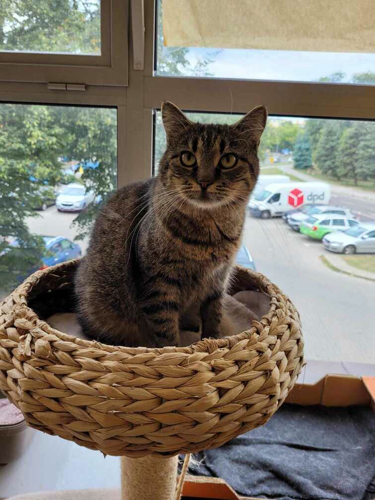 Kotek ma się coraz lepiej, jest przyjazny do innych kotów i szuka człowieka który się nim zajmie.