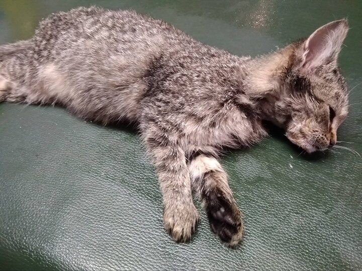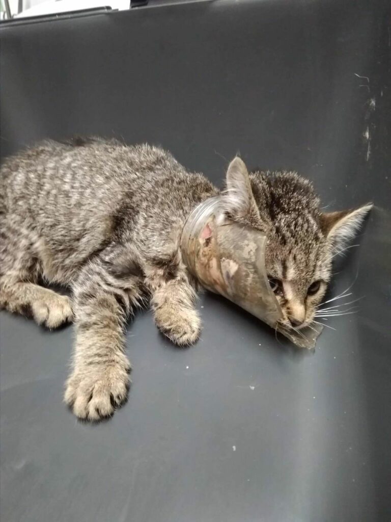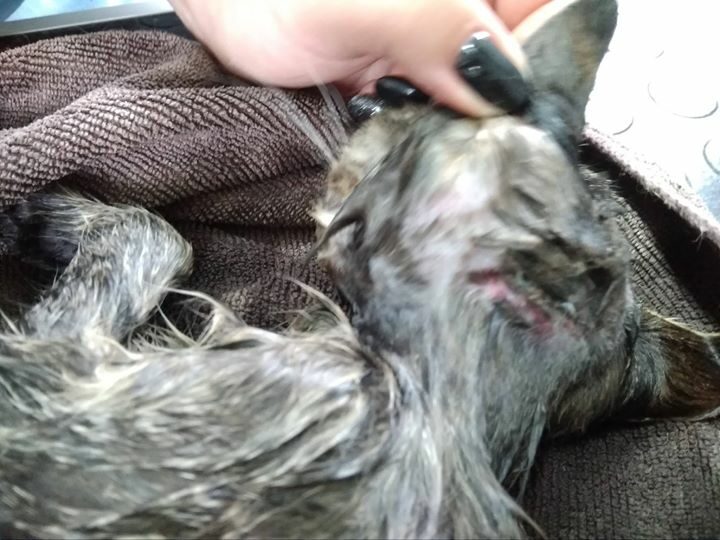 Bierzemy udział w wielu dramatycznych interwencjach, jednak ta w sposób szczególny nami wstrząsnęła. Otrzymaliśmy informację o dzikim kociątku, które od trzech tygodni biega ze stłuczonym słoikiem na głowie. Głodny kociak zapewne włożył pyszczek tam gdzie nie powinien, w poszukiwaniu jedzenia, a skończyło się to dla niego tragicznie. Pojemnik uciskał maleństwu szyję, a potłuczone szkło raniło i uniemożliwiało jedzenie. Wycieńczone i przerażone maleństwo udało się złapać i przewieźć do weterynarza, gdzie pod narkozą usunięto szkło. Kociczka otrzymała imię Sonia i po tych dramatycznych przeżyciach wymagała leczenia i rehabilitacji. Kotka miała sztywność w karku i rany oraz odparzenia na głowie i pyszczku. Była też mocno niedożywiona. Została uleczona, odrobaczona i zaszczepiona. Wciąż pokazuje wdzięczność za pomoc i pełną miskę mrucząc i ocierając się o każdego. Jest cudowną kotką, która łaknie miłości do człowieka. Kotka ma białaczkę, ale kocia białaczka to nic strasznego… jej nosicielami jest 10% populacji kotów i zwykle wirus do końca życia pozostaje uśpiony. Koty ze zdiagnozowaną białaczką mają jednak dużo mniejsze szanse na domy, mimo iż równie bardzo pragną miłości człowieka i swojego bezpiecznego miejsca. Dlatego też apelujemy o adopcje FeLV-ków. Mamy ich w Kociej Wyspie sporo, a zdecydowana większość jest całkowicie bezobjawowa. Szukamy dla niej domku niewychodzącego, najlepiej z drugim, niedominującym kotkiem (istnieje możliwość dobrania kota z fundacji). Wysterylizowana, zaszczepiona, odrobaczona.