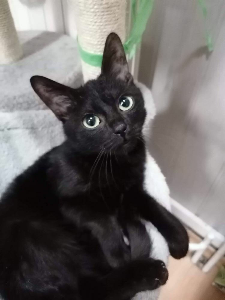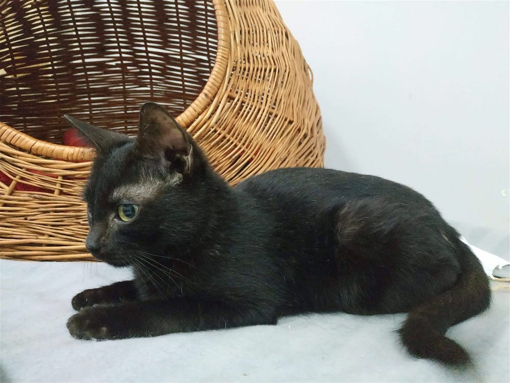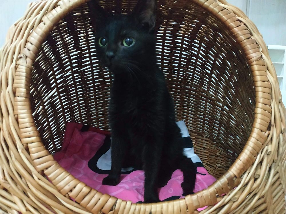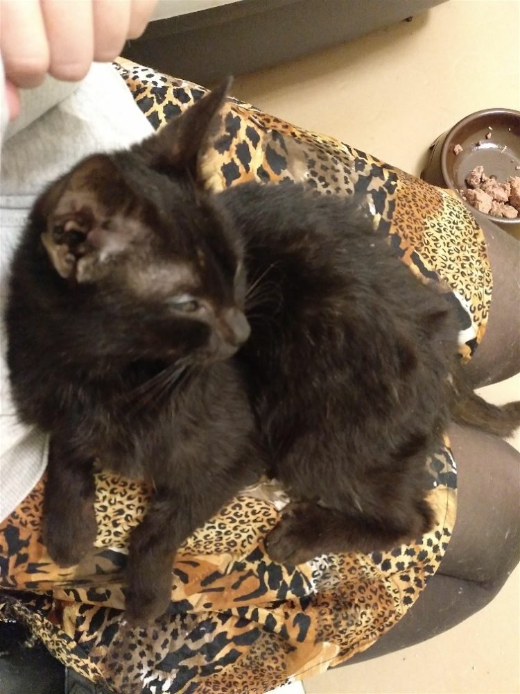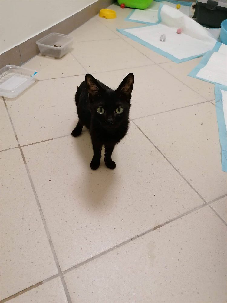 Prawie 50 kotów, zamkniętych na powierzchni 30 metrów kwadratowych, w brudzie i we własnych odchodach. Wśród nich karmiące kocice z maluszkami, koty głodne, chore i zarobaczone. Po śmierci opiekunki, groziła im wszystkim zagłada, lecz dzięki dobrym ludziom mają cień szansy. Koty od trzech tygodni zamknięte były w transporterach, osoba która je tam zastała musiała od czegoś zacząć. Część została zabrana w pierwszej turze interwencji przez Fundację Felineus… pozostała część trafiła między innymi do nas. Wyciągane były z transporterów, gdzie spędziły długie tygodnie. Część z nich ma odparzenia, część biegunki, część przykurcze, które utrudniają im poruszanie się. Koty mają pchły, świerzbowca, tasiemca… są skrajnie wychudzone i ledwie żywe ze strachu. Z każdym dniem zaczynają ufać człowiekowi, dają się głaskać, cieszą z zabawek i jedzonka. Syriusz wygląda jak 4 miesięczny kociak. Jest malutki ale odważny. Przybiega do ludzi prosząc o głaskanie i jedzenie – to jego dwie ulubione przyjemności. Jest niesamowitym pieszczochem.