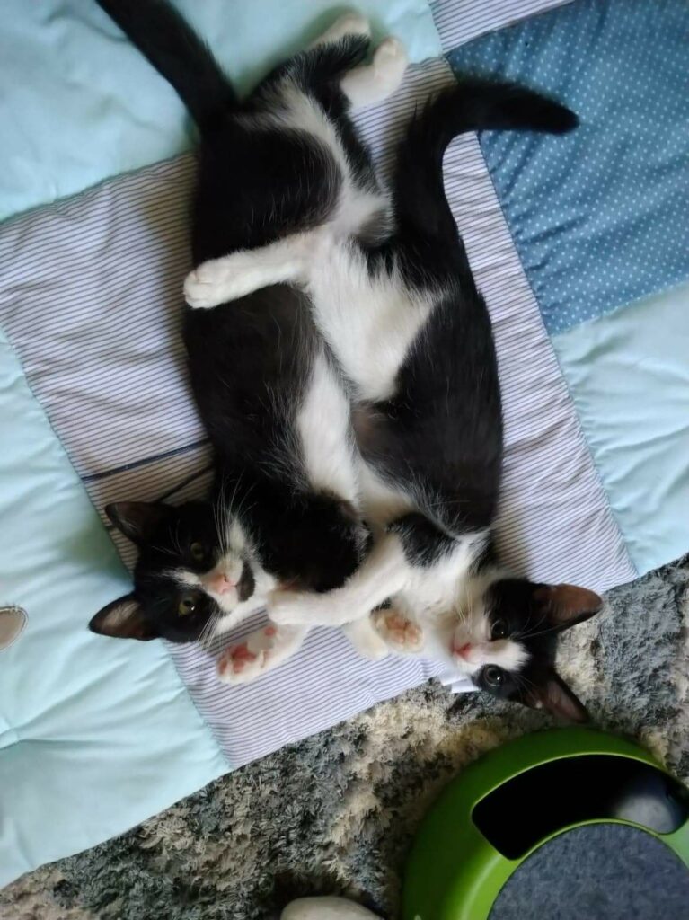 Żabcia i Klara to dwupak nie do rozdzielenia. Żabka została przez nas wykarmiona od oseska. Wstawaliśmy do niej w nocy i tuliliśmy całymi dniami, aby nie odczuła tak bardzo braku matki. Klara została znaleziona na zajezdni autobusowej w Stalowej Woli. Przyjazne kocie dziecko… zmarznięte i głodne, czekało na pomoc na drzewie i płakało. Obie kruszynki poznały się w domu tymczasowym i są nierozłączne. Wyglądają jak siostry i zachowują się jak siostry ❤️ Szukamy im najlepszego domu na świecie. Odpowiedzialnego i kochającego 😺 Maluszki są już odrobaczone i zaszczepione.