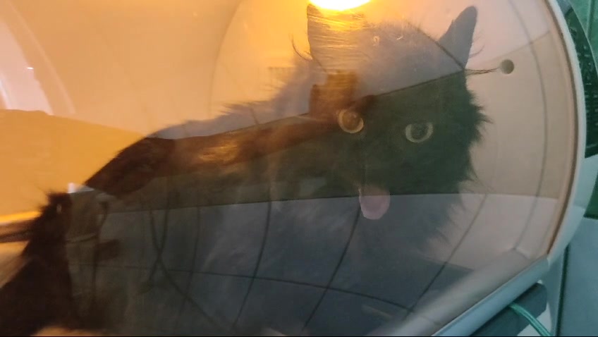 Kotek został poddany tlenoterapii i dostał niezbędne leki, lecz musieliśmy go zabrać gdzieś, gdzie nie udusi się przez noc…miał czas tylko do 17. Jakiekolwiek RTG kompletnie nie wchodzi w grę, gdyż kotek dusi się przy każdym stresie.