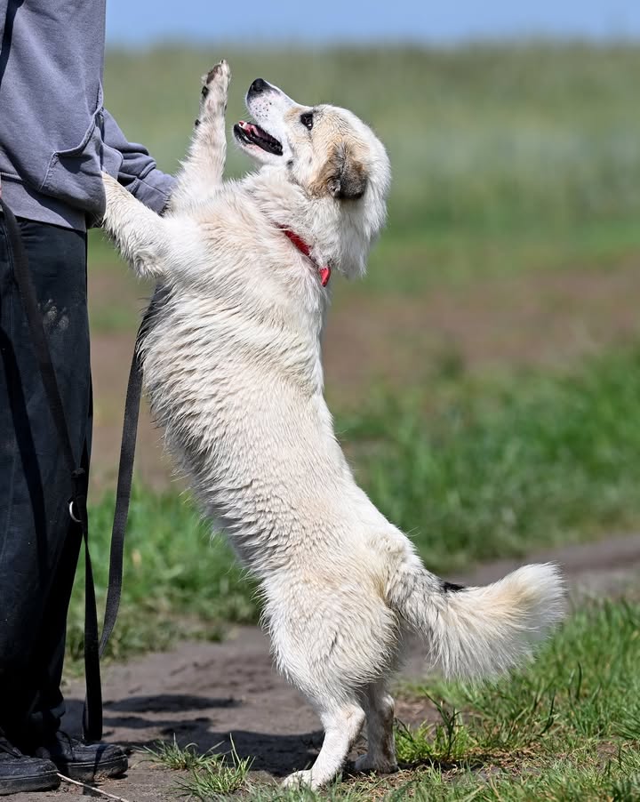 Kocha długie spacery i nie przegapi żadnej kałuży 😅 Jest przy tym wyjątkowo sympatyczny i wpatrzony w człowieka jak w obraz ❤️