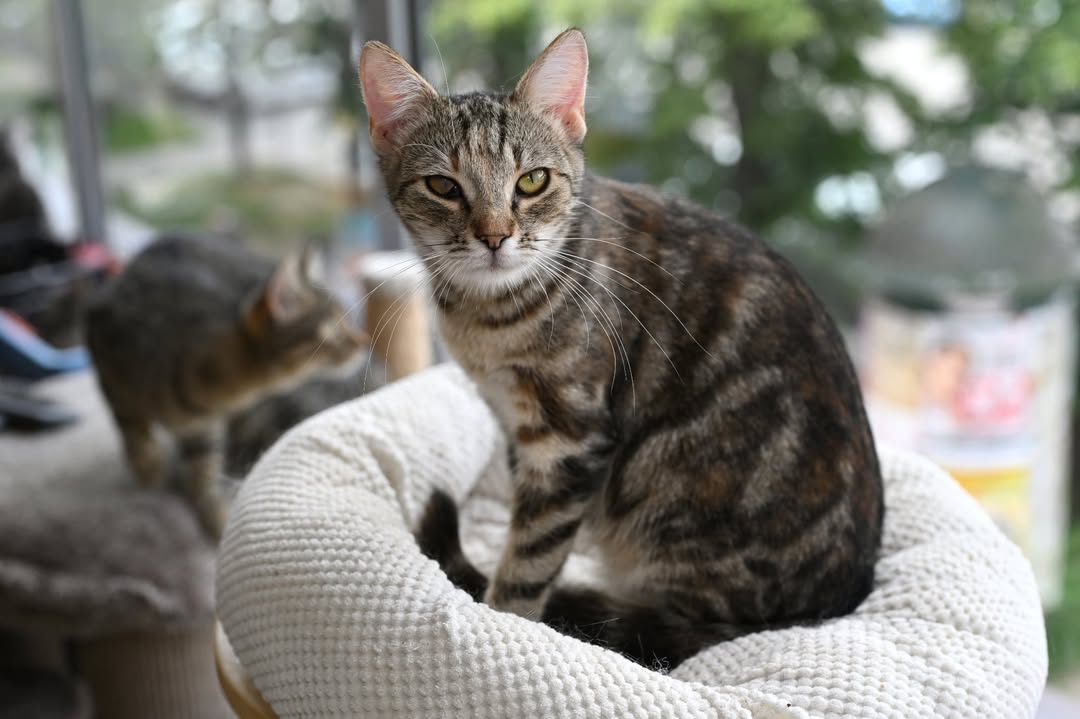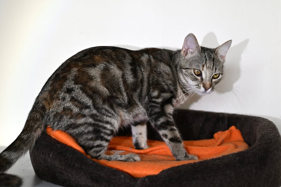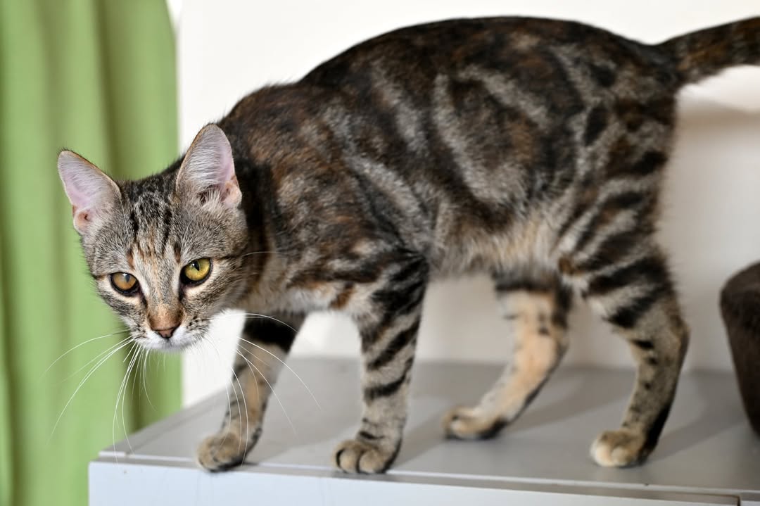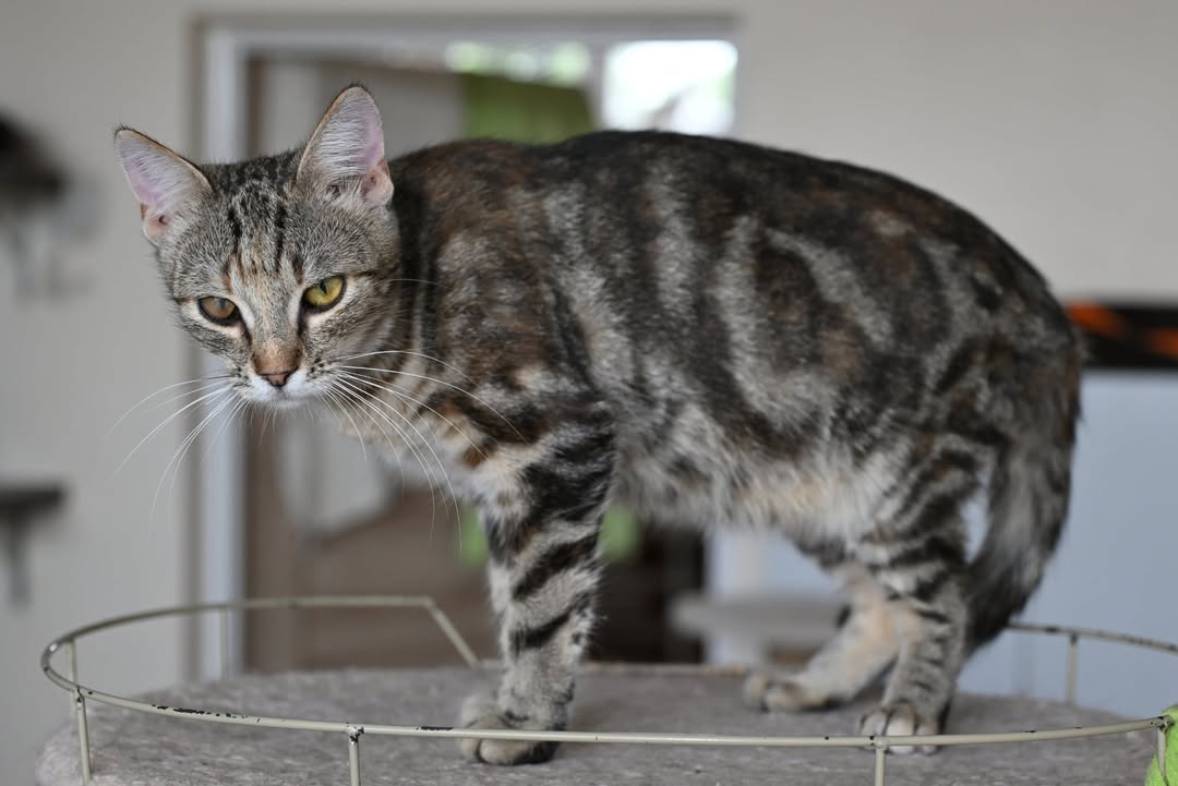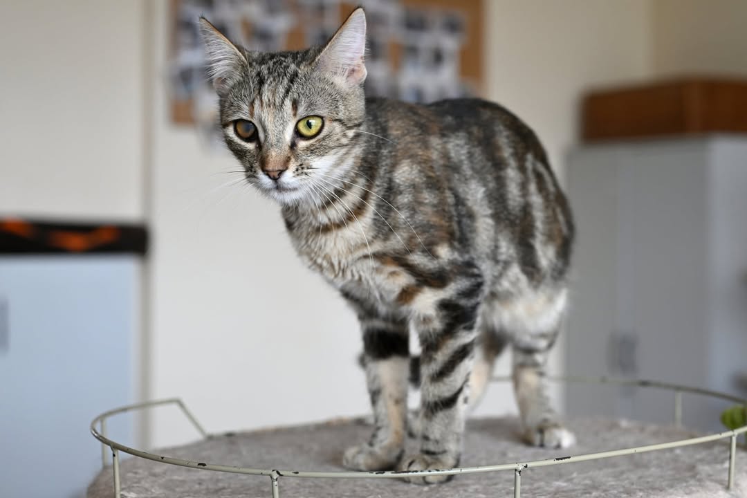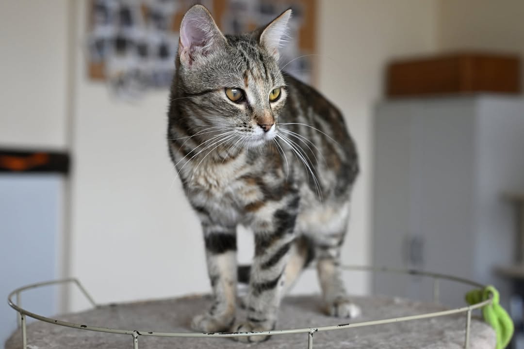 Murka wyrosła na wspaniałą, piękną kotkę o marmurkowym umaszczeniu, a po chorobach zostało jedynie jedno ciemniejsze oczko.