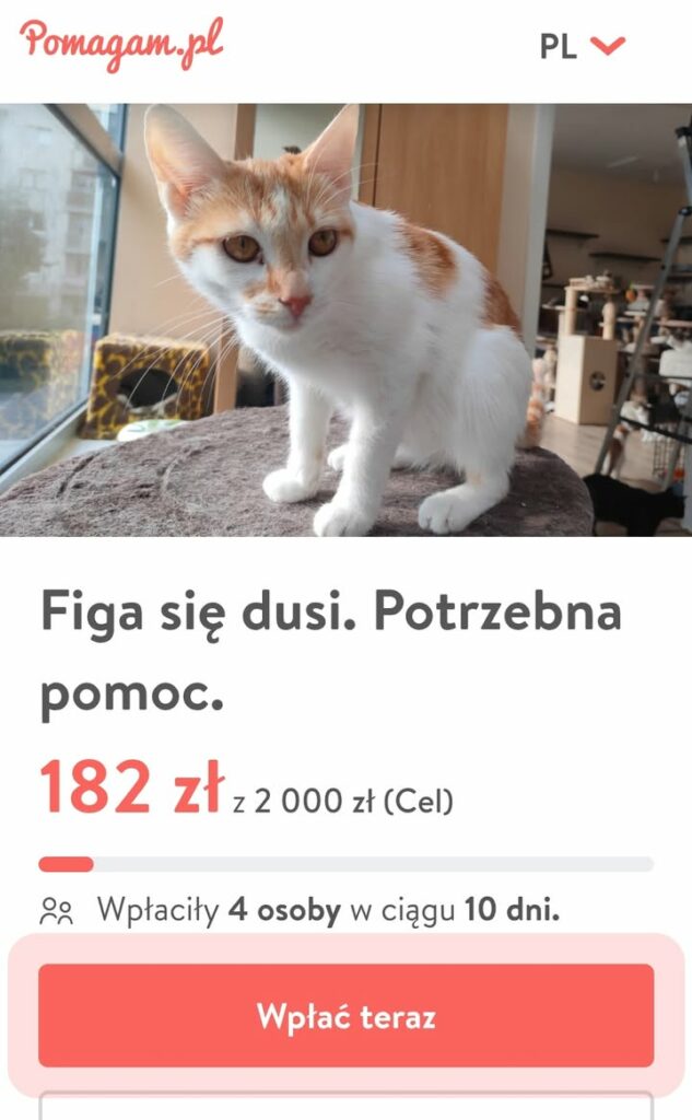 Nasza Figa niestety nie wzbudziła zainteresowania, a wciąż ma problemy z oddychaniem, wynikające z rozległego zapalenia płuc. Jest leczona, ale nie miała nawet pełnych badań 😓