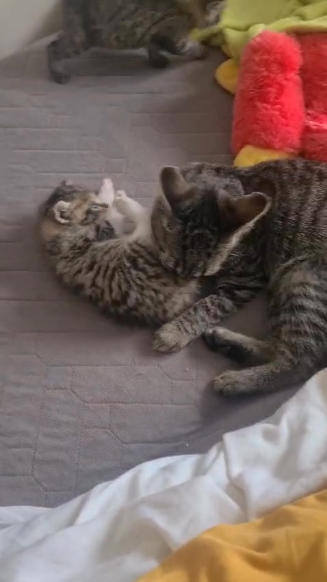 Nasze butelkowe maluchy mają się bardzo dobrze. Rolę matki, przejął 3.5 – miesięczny Gieniuś 🥰 Kocurek na swoje nieszczęście urodził się taki pospolity bury, a jak się okazuje, jest prawdziwym wyjątkiem i bardzo mądrym młodzieńcem ❤️ Zarówno maluszki, jak i tatuś Gieniuś, są do adopcji ❤️ Nadal możecie wesprzeć tą całą kocią rodzinkę dobrymi karmami i datkiem na opiekę weterynaryjną. pomagam.pl/a3dgkr