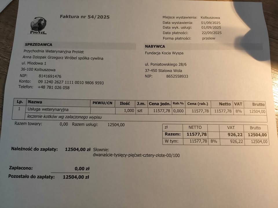 Większość naszych długów za leczenie, udało się w ostatnich czasach spłacić. Została jedynie faktura z tego właśnie szpitalika w Kolbuszowej, na kwotę 12500 zł.