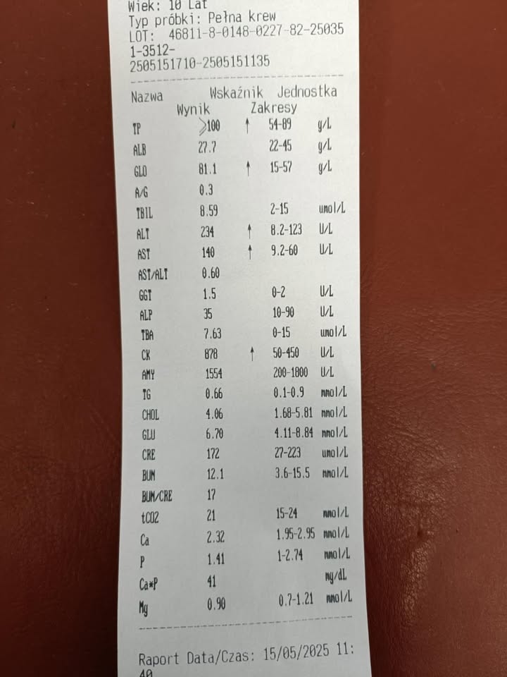 To jednak nie koniec cierpienia kotki – wstępne badania pokazały poważne problemy z wątrobą. Leczenie będzie długie i mozolne 🙁