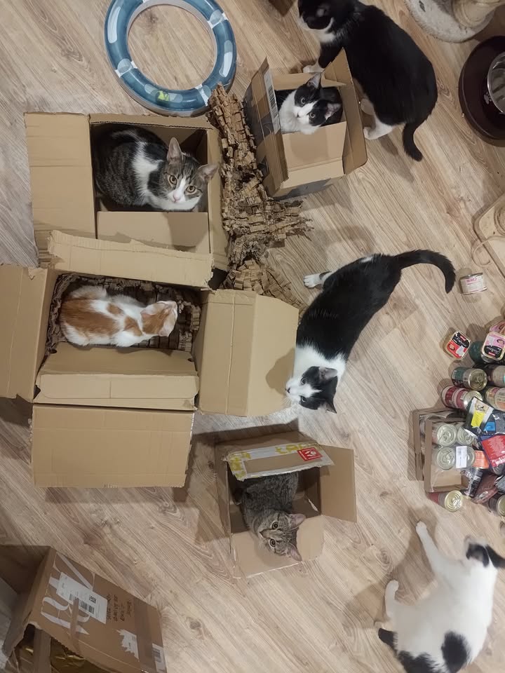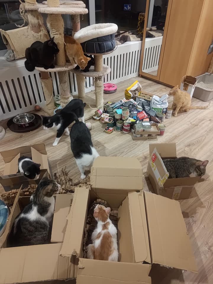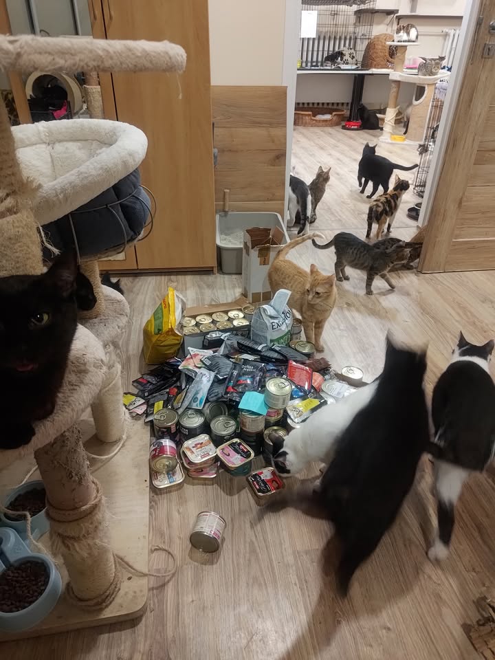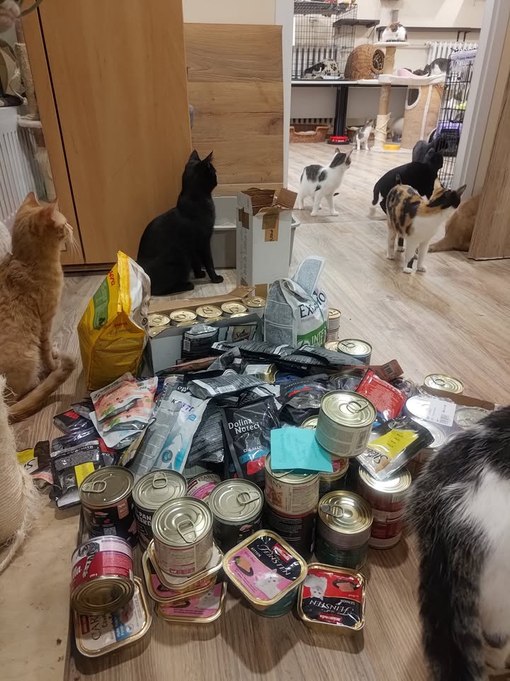 Po naszym ostatnim apelu otrzymaliśmy całe mnóstwo paczek z kocią karmą. Wychodzi na to że bardzo dużo kotków podzieliło się swoimi zapasami 💖