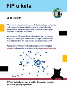 FIP – zakaźne zapalenie otrzewnej – wirusowa choroba przenoszona przez krew lub odchody zakażonych osobników. Uaktywnia się przy ogromnym stresie. Choroba nieuleczalna prowadząca do śmierci w formie wysiękowej po kilku tygodniach, a w formie bezwysiękowej – po kilku miesiącach.