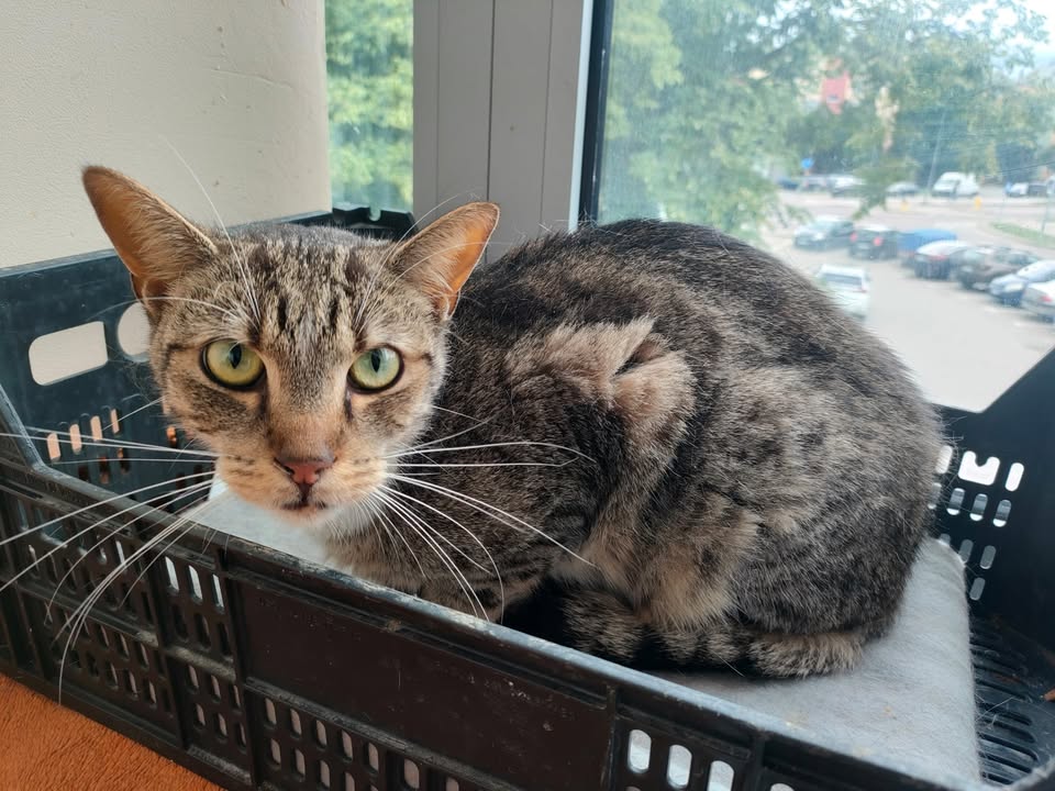 Simon był jeszcze kocim dzieckiem, kiedy to razem z rodzeństwem koczował na działkach w Stalowej Woli. Dowiedzieliśmy się, że starsza pani jeździ za San, karmić je raz dziennie. Więcej nie miała siły…a to były jeszcze kocie maluszki, które powinny być z mamusią.