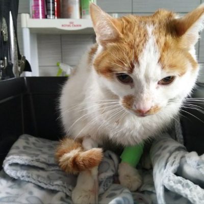 Mozart trafił do nas jakiś czas temu z jednej z wsi niedaleko Stalowej Woli. Miał tylko trzy łapki, a podczas wizyty w lecznicy, stwierdzono, że łapka nigdy nie była amputowana – kotek ją stracił w wyniku wypadku i musiał dojść do siebie własnymi siłami.